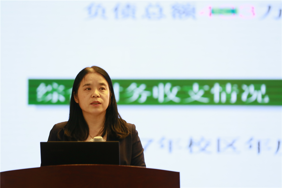 张红艳向大会作校区2017年财务收支情况通报,报告了2017年度校区的总体财务状况,分别对财务收支情况进行了分析,并报告了2018年度预算情况。