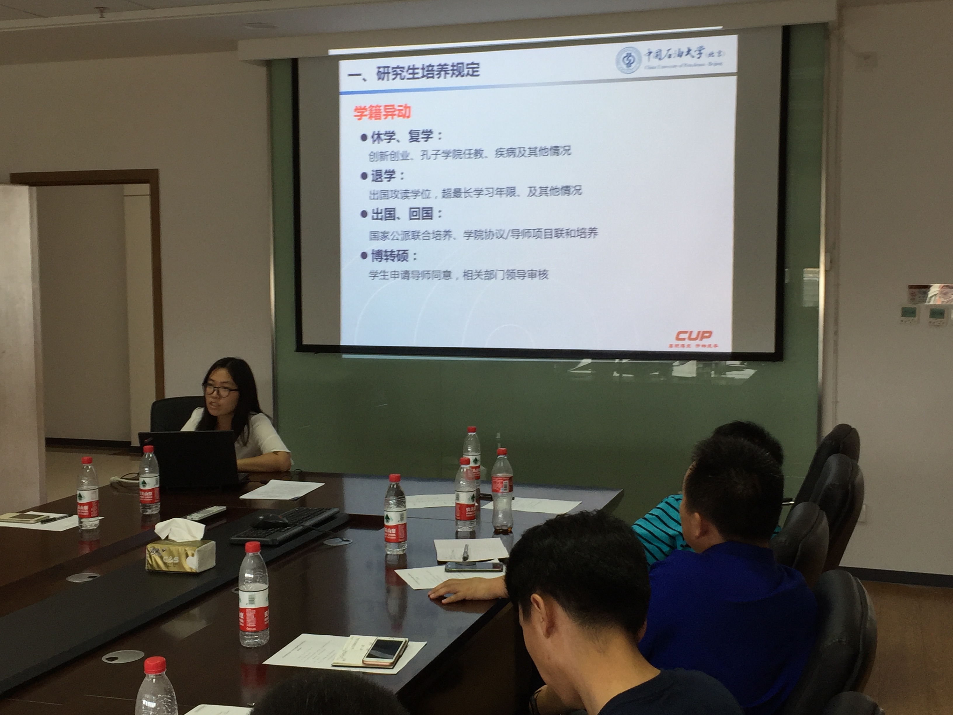 培养办公室王楠老师介绍了研究生学籍学历、学习管理、课程考试等方面的规定,现场演示了研究生管理信息系统教师端和教学秘书端的各项功能,重点介绍了研究生培养计划制定和选课的详细步骤。