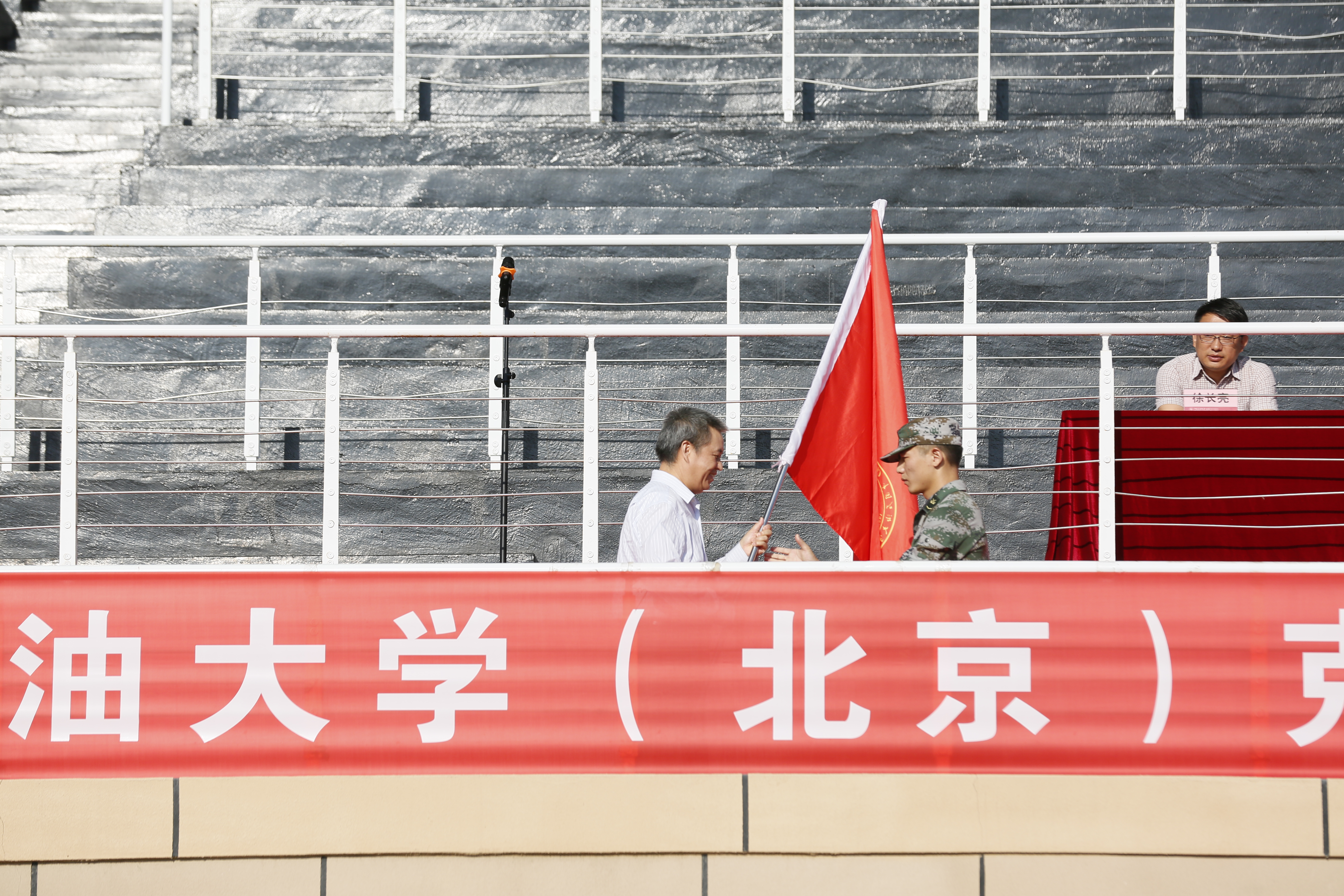 8月29日,中国石油大学(北京)克拉玛依校区2018级学生军训开训典礼在大学城体育场举行。副校长、校区党工委书记陈大恩,党工委常务副书记陈桂刚,各学院专职副书记,承训教官,带队教师和957名参训学生参加了此次典礼。典礼由学生工作与安全保卫部主任姜立国主持。