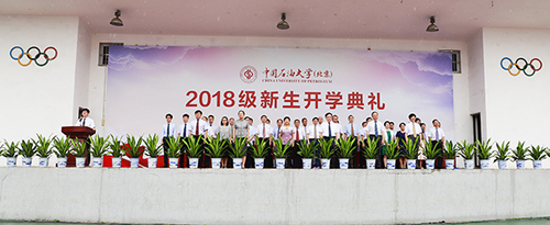 微风悄然至,绿叶轻挽秋。8月30日上午,伴随着一场浅秋的绵绵细雨,中国石油大学在红旗操场举行2018级新生开学典礼,热烈欢迎校本部4400余名2018级新生在石大校园开启人生新征程。校领导山红红、张来斌、吴小林、雷玉江、韩克飞、李根生、韩尚峰,以及各学院和相关职能部门负责人出席了开学典礼。开学典礼由党委副书记、副校长韩尚峰主持。