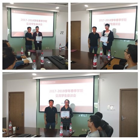 座谈会上,12名交流学生汇报了半年学习收获。同学们分别从学习、学术活动及课外活动这三个方面进行总结,并与相关职能部门负责人就学习生活、课程实践、教学安排等作自由交流。