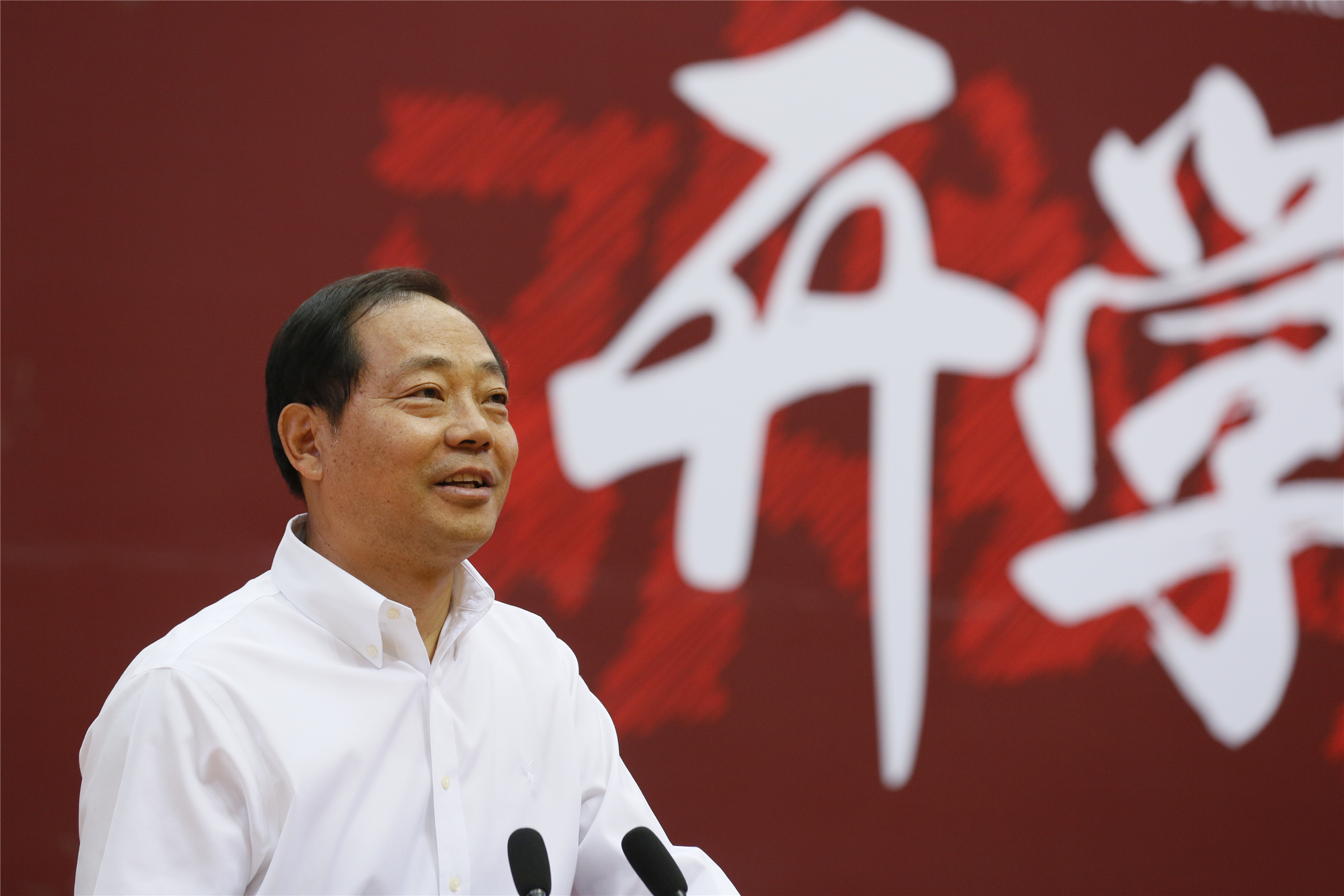 在热烈的掌声中,校长张来斌发表了题为“扬石大精神 绘青春底色”的讲话。张来斌首先代表全校师生员工,对新同学的到来表示热烈欢迎,祝愿同学们在美丽的克拉玛依校区实现自己的人生理想!