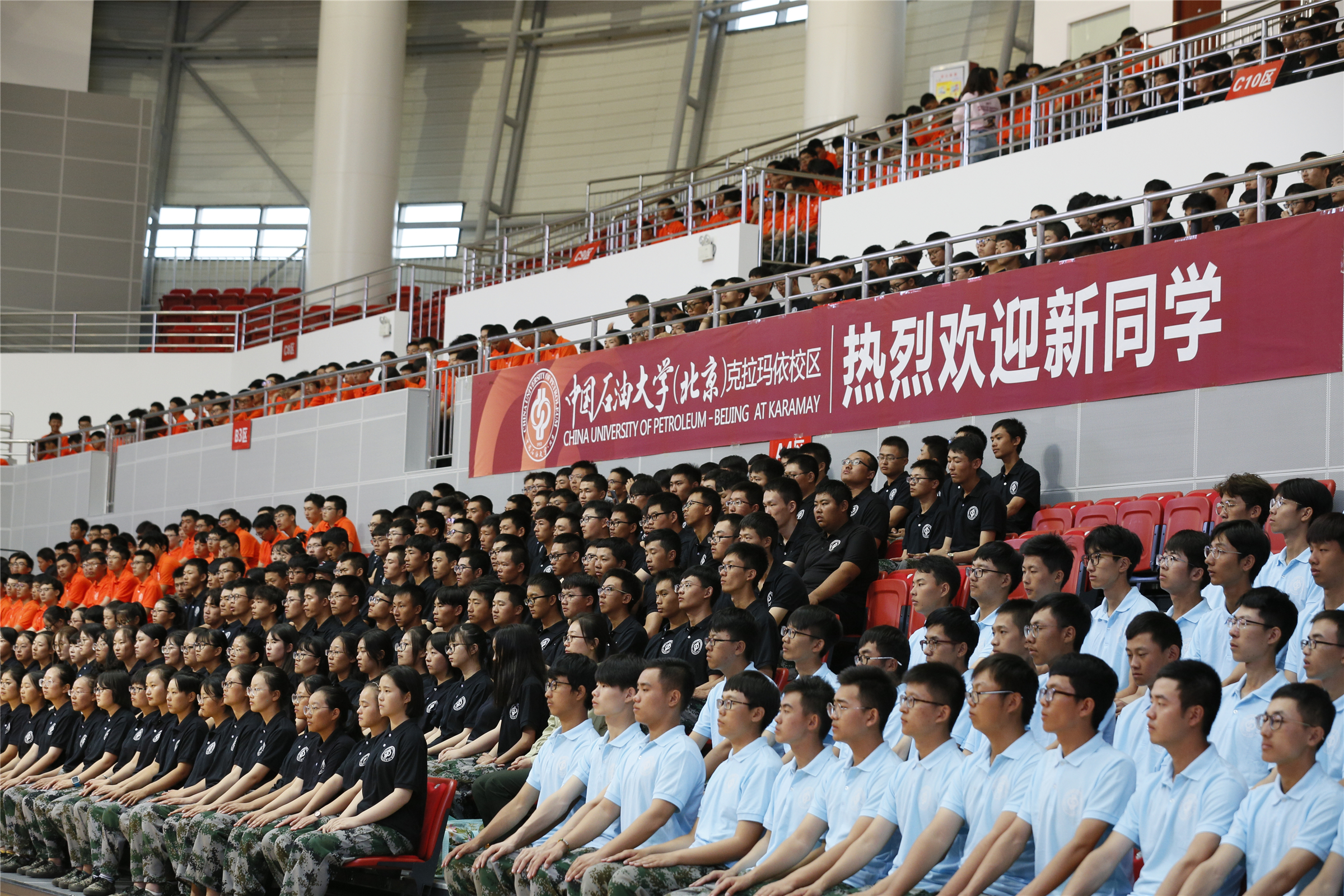 9月9日上午11时,中国石油大学(北京)克拉玛依校区2018级本科生新生开学典礼在大学城体育馆隆重举行,950余名新生参加开学典礼。中国石油大学(北京)校长张来斌;新疆维吾尔自治区人民政府党组成员、中国石油天然气集团公司总经理助理、新疆油田公司党委书记、总经理陈新发;克拉玛依市委副书记、市长王刚,克拉玛依市政府副秘书长、办公室主任高峻;克拉玛依校区全体党工委、管委会委员,以及校区全体教职员工出席典礼。副校长、克拉玛依校区管委会主任兼党工委副书记张士诚主持典礼。