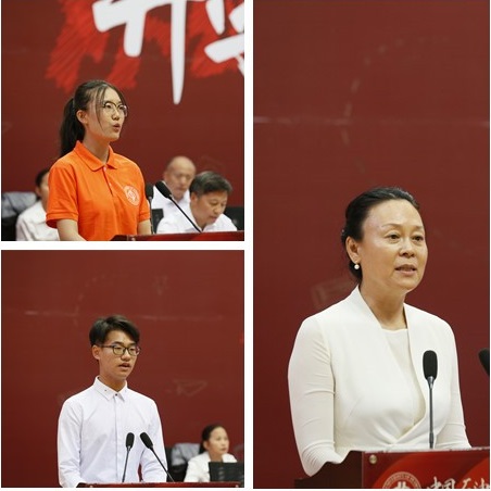 文理学院王琳教授代表教师发言,她希望同学们秉持石大精神成就梦想,在美丽的红山湖畔收获如歌的青春岁月。石油学院资源勘查工程专业2017级本科生孙笑凡代表在校生发言,他分享了自己的学习感悟并衷心祝愿同学们能在石大度过最美的青春时光。工学院过程装备与控制工程专业2018级本科生朱泽勤代表新生发言,她表示将用脚踏实地的付出和坚韧不拔的奋斗去诠释石大精神,成为一名名副其实的石大人。