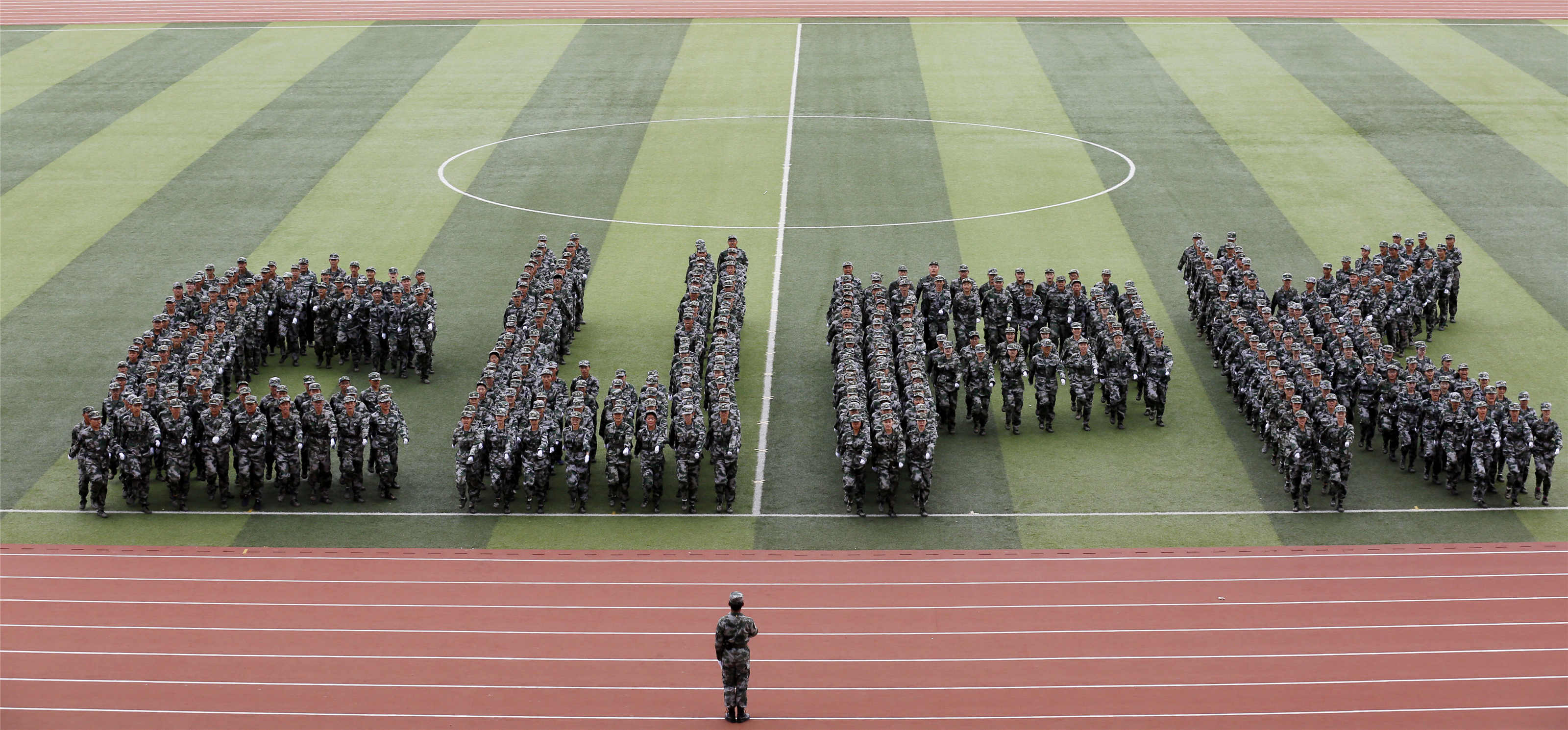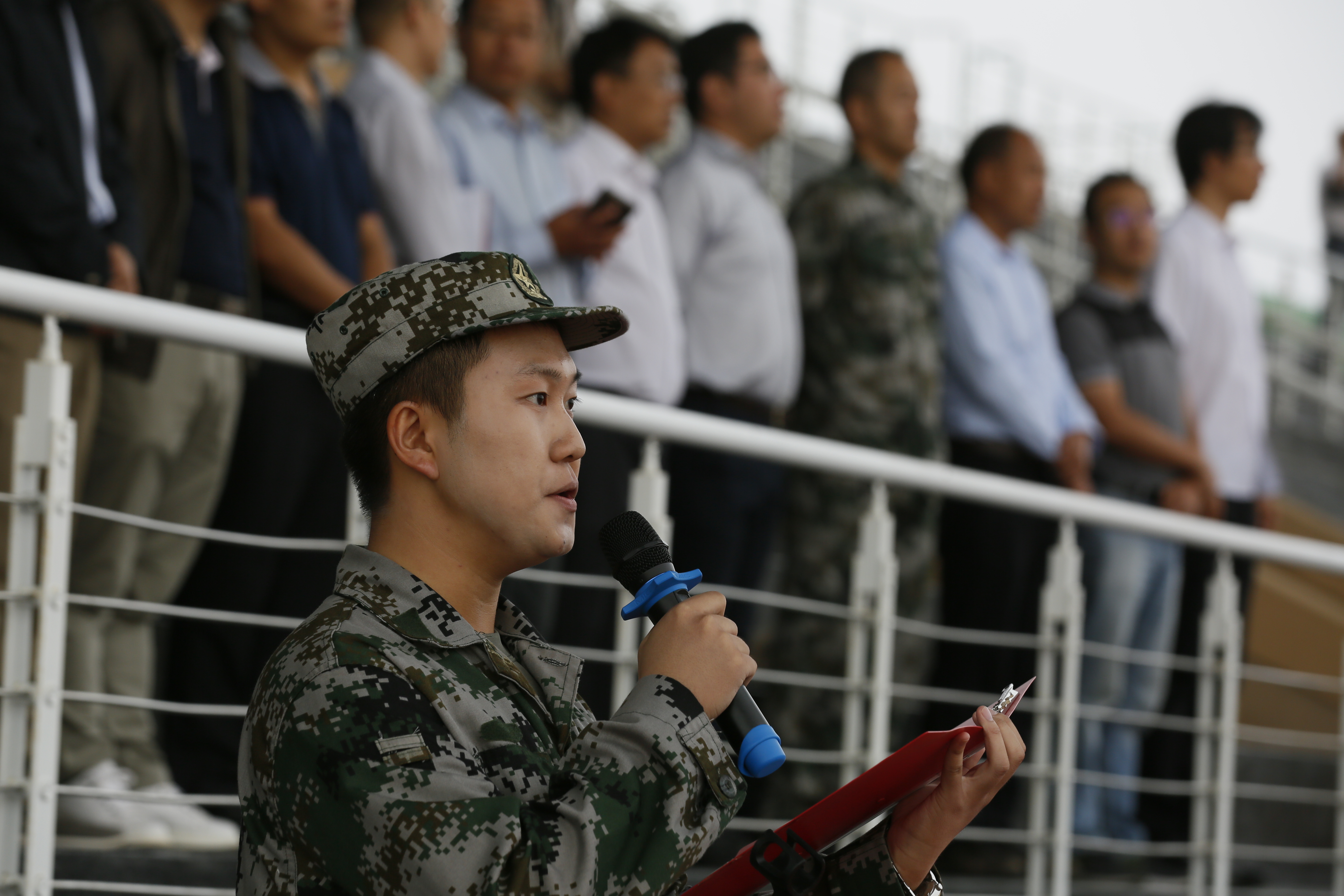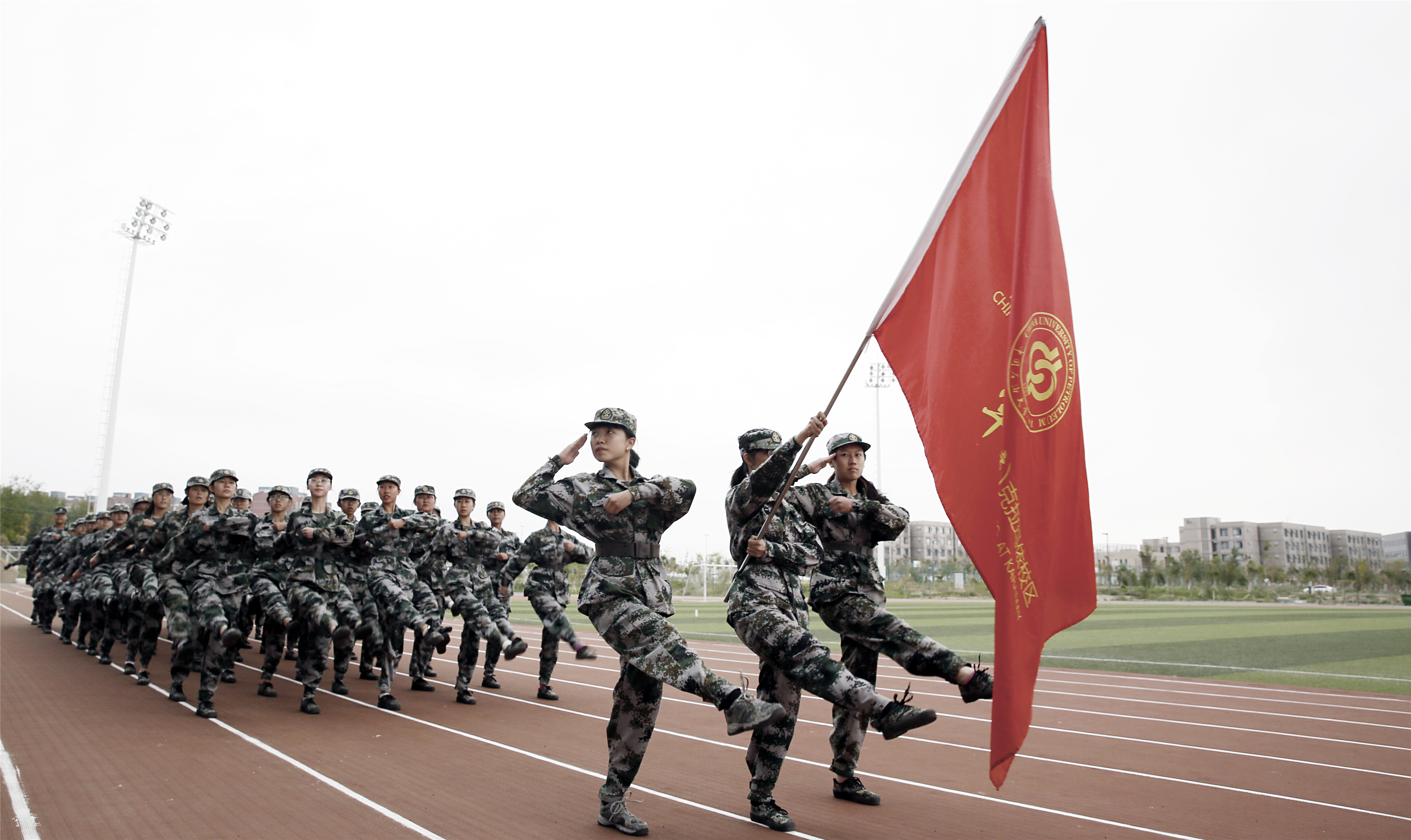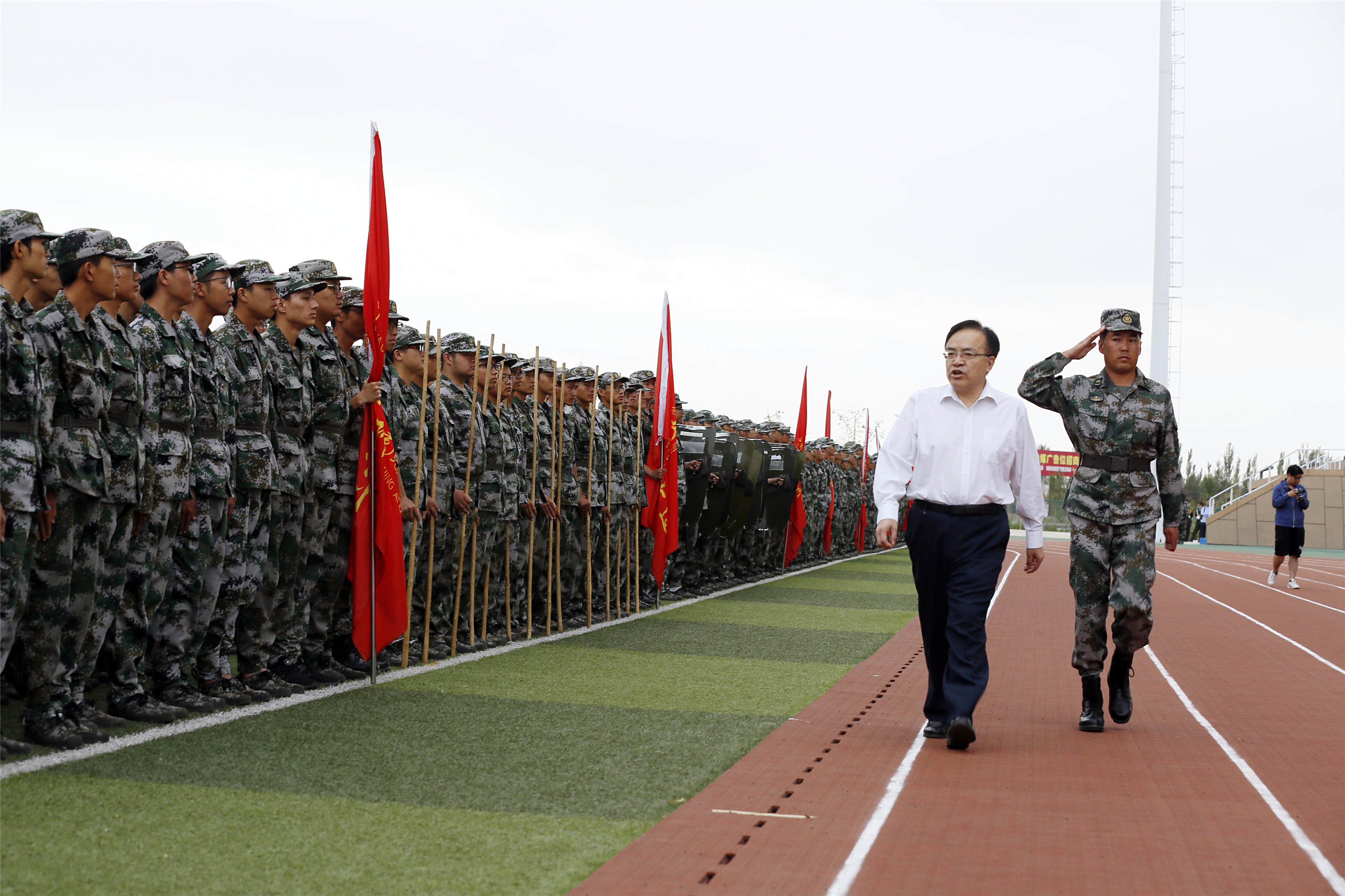 伴随着激昂的检阅进行曲,张来斌检阅军训连队,军训团整齐嘹亮的口号声飘荡在红旗操场上空。