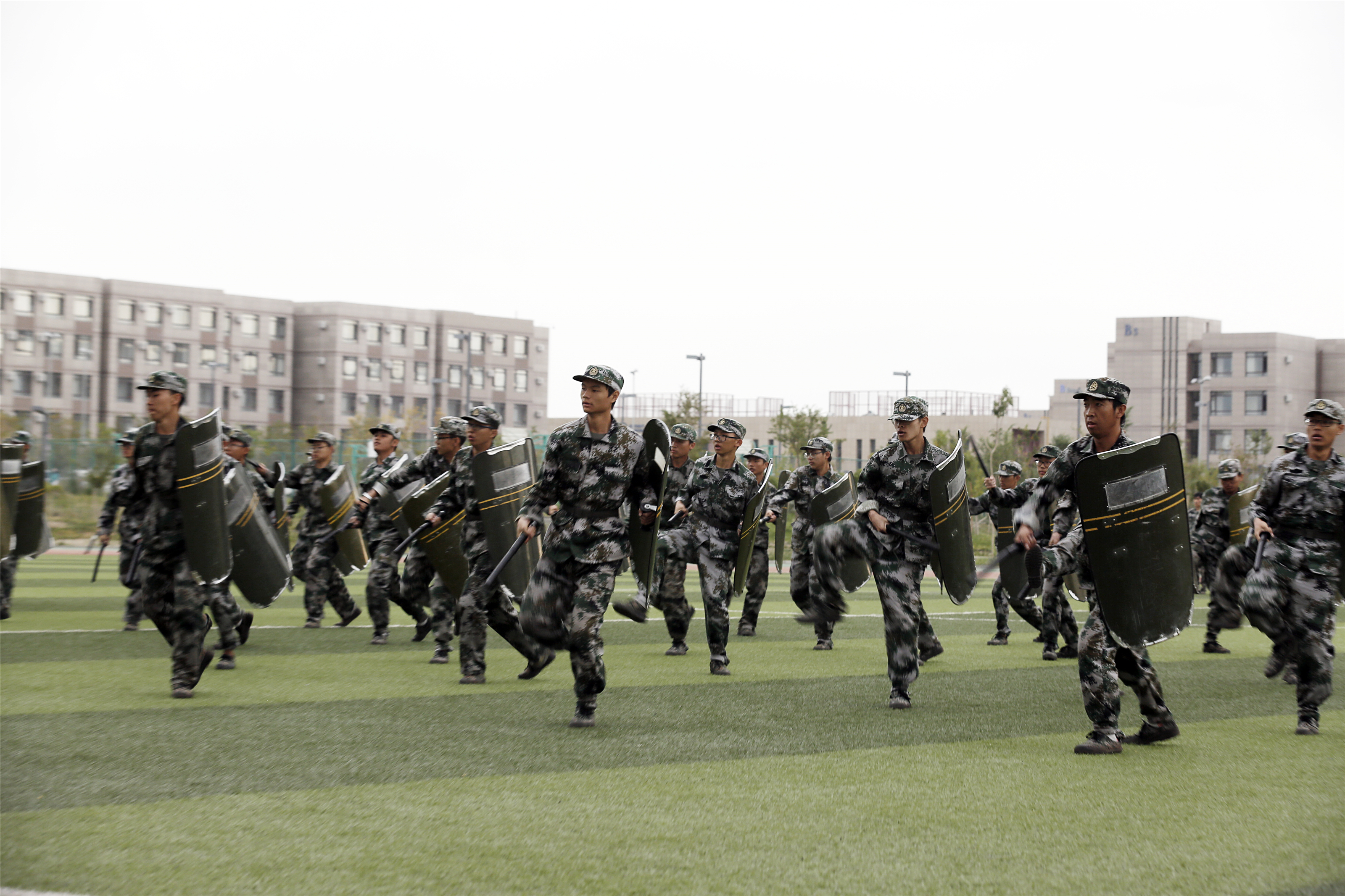 在分列式表演中,同学们步伐坚定自信、口号铿锵有力、气势恢宏磅礴,展示了石大学子青春昂扬、积极向上的精神风貌。之后的擒敌拳、警棍盾牌操、应急棍术、三声三相等军事汇报表演中,展示了本次军训的优秀成果,赢得掌声阵阵。