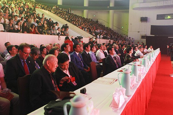 65载风雨兼程,弦歌不辍,薪火相传。9月22日晚上,“我为祖国献石油”中国石油大学校庆文艺晚会在体育馆隆重举行,为石大师生、返校校友和到校嘉宾带来了一场激情洋溢、情怀深沉的视听盛宴。校领导、校内外嘉宾、校友及师生代表近1500人现场观看晚会。晚会同时进行了网络直播。