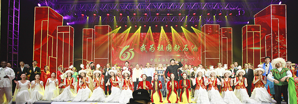 在晚会的最后,全体演员和现场嘉宾观众齐声高唱校歌《我为祖国献石油》,激昂的歌声表达着石大人对母校、对石油事业、对伟大祖国的无限热爱。中国石油大学建校65周年文艺晚会在喜庆、热烈、感人的氛围中圆满落幕。