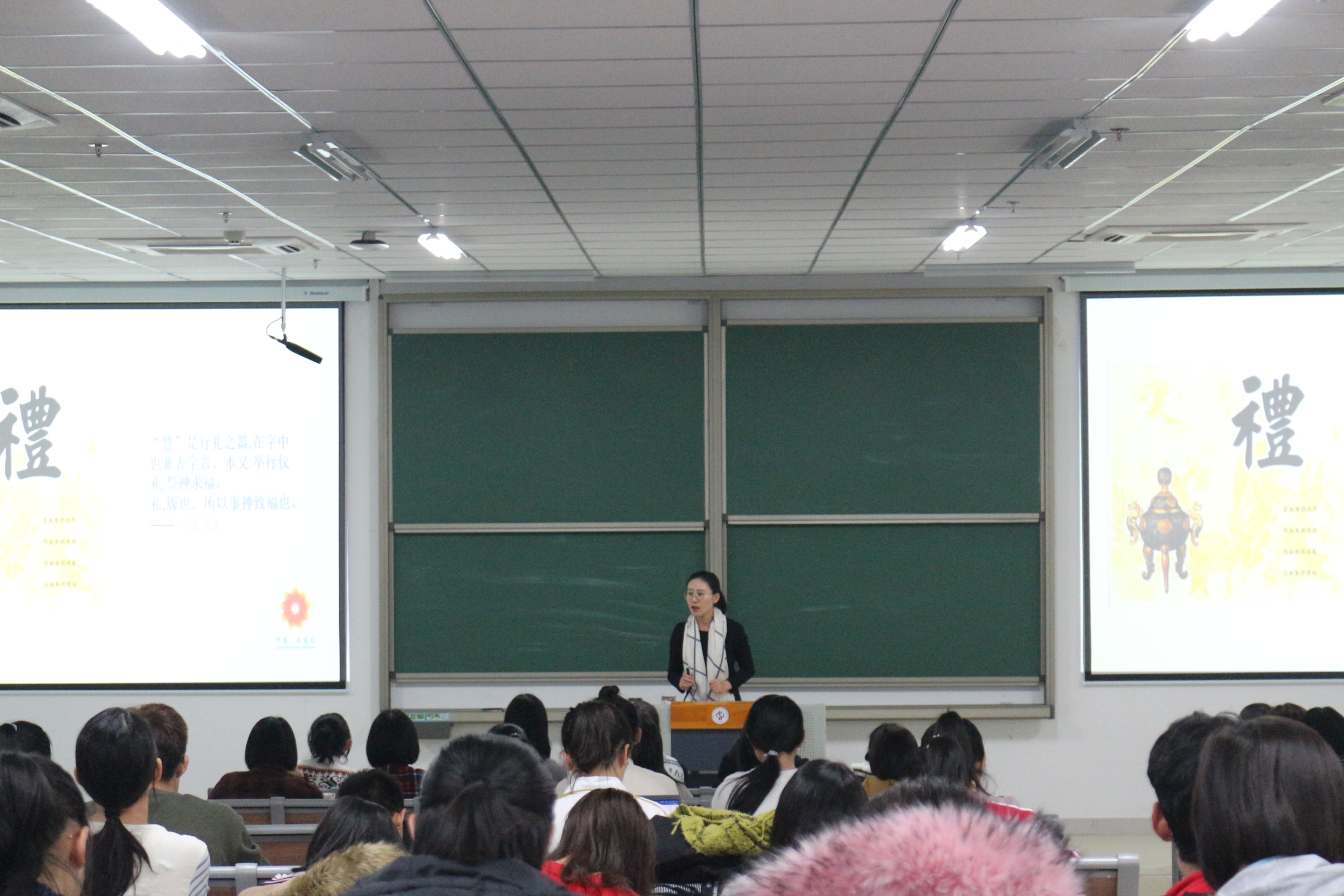 唐晓娜老师从敬、净、静、雅四个层面同大家分享了如何进行自我形象管理以及如何让礼仪融入到日常生活和学习中,达到双舒双然的目标。她认为,礼仪不是表演,而是发自内心的德行。讲座的最后,唐晓娜老师用一个简短的视频向大家诠释了微笑的力量,师生们用热烈的掌声感谢唐老师的精彩讲座。