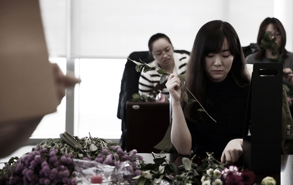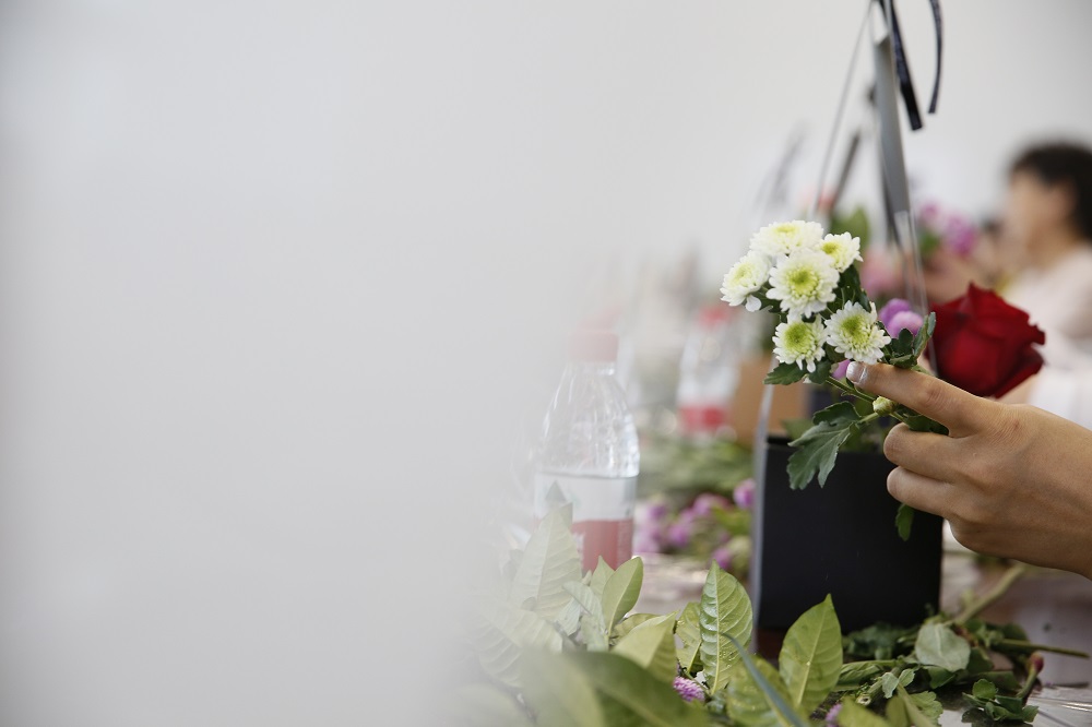 此次活动邀请专业的花艺师来校教授插花艺术。花艺师对选花、裁剪、颜色搭配、造型等方面的插花技巧和注意事项进行讲解并做了示范之后,老师们积极参与,充分发挥了自己的想象力与创造力,按照插花步骤一步一步地将各色鲜花有层次的搭配在一起,把对生活和美的感悟通过一双双灵动的巧手淋漓尽致地表达出来。