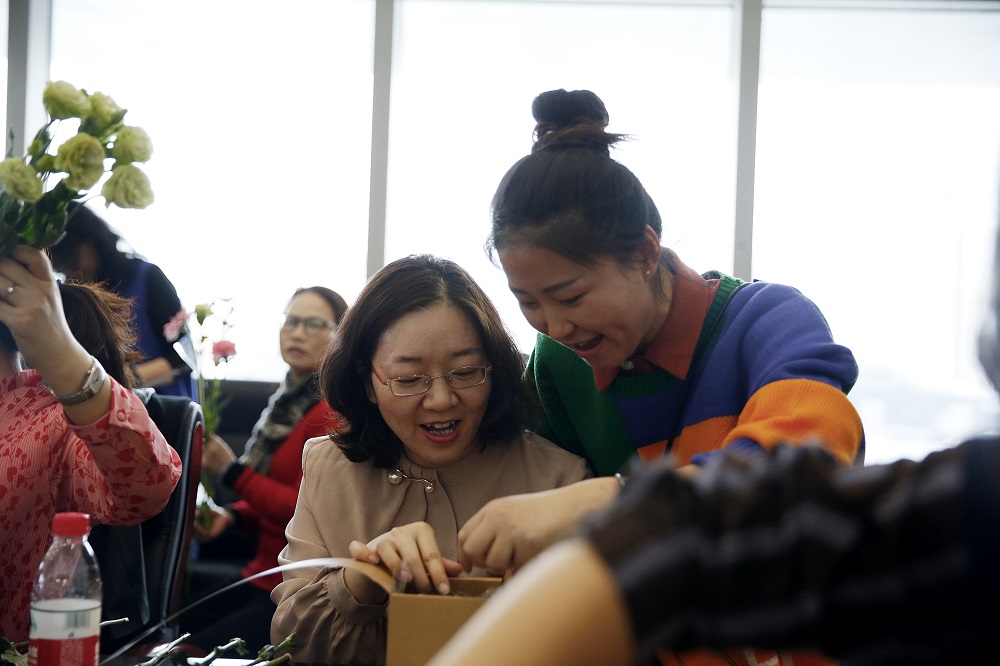 在 “三八”国际劳动妇女节到来之际,为丰富校区女教职工的节日文化生活,陶冶情操,舒缓压力,校区工会于3月8日下午组织了一场以花为名的约会——花艺沙龙,校区70余名女教工参加。