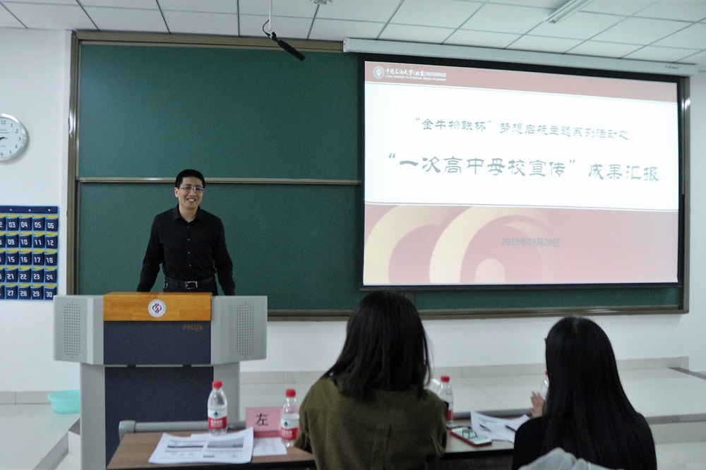 3月29日,校区 “金牛物联杯”梦想起航主题系列活动之“一次高中母校宣传”汇报评比工作在C6楼I403顺利举办。本次活动邀请到新疆金牛能源物联网科技股份有限公司副总工程师谢欣岳、教务与国际交流部主任杨皆平、学生工作与安全保卫部主任姜立国及相关老师担任评委。