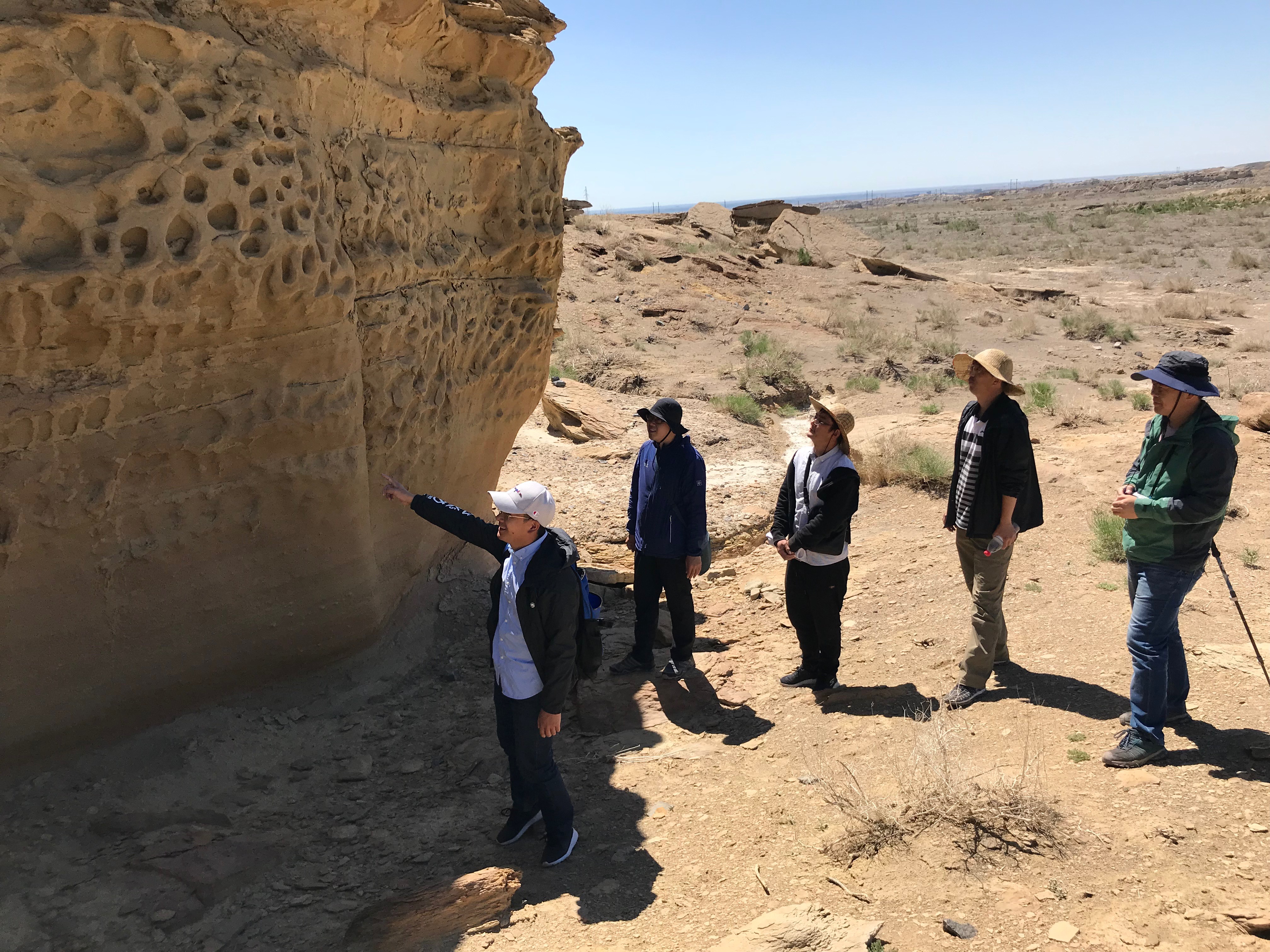 为庆祝石油学院地质系党支部的成立,深入推进“两学一做”学习教育常态化制度化建设,在党支部书记能源老师的带领下,支部近期开展了 “红五月、地质行”主题党日活动,对准噶尔盆地西北缘重点野外剖面进行徒步考察。