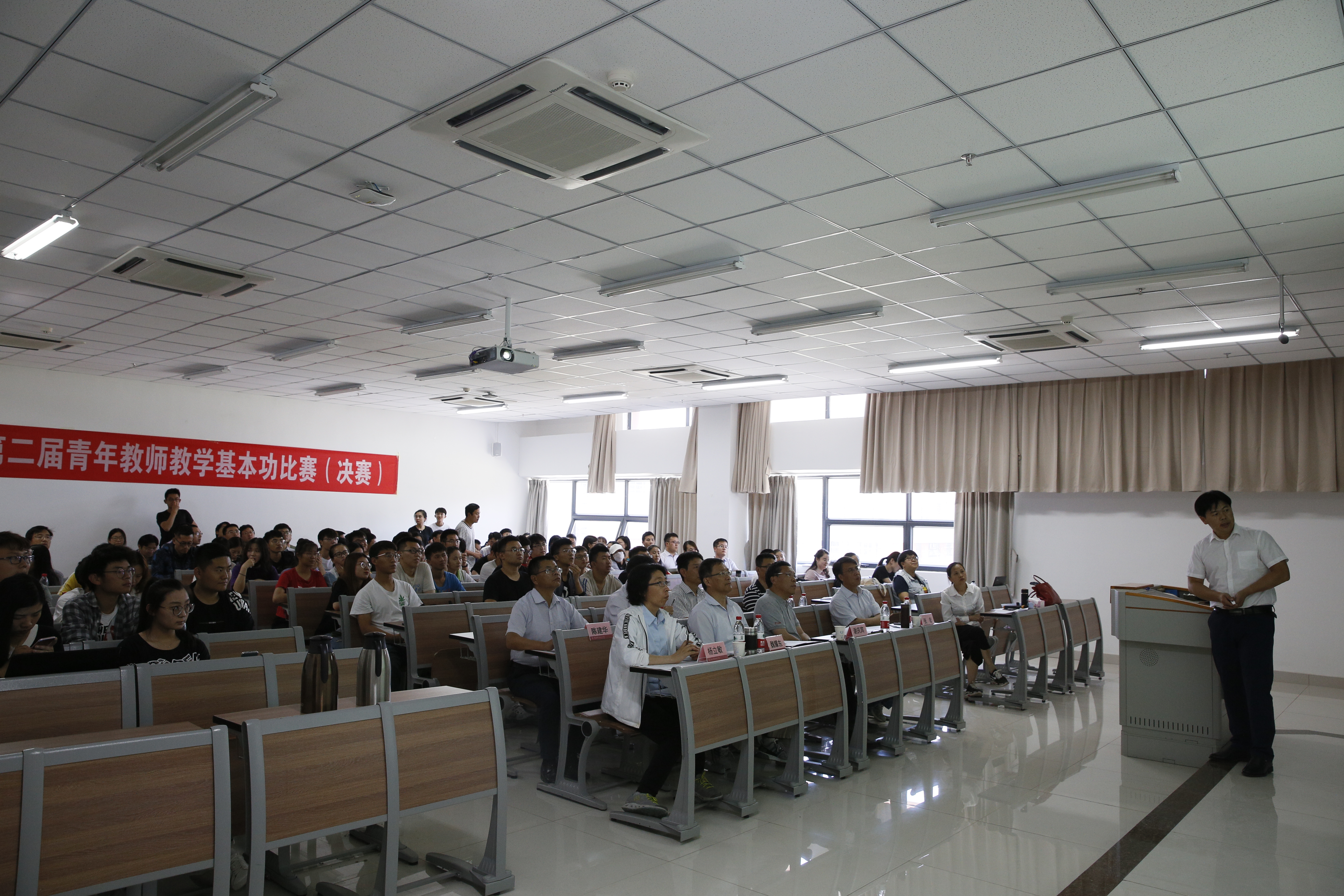 校区第二届青年教师教学基本功比赛自5月部署以来,教务与国际交流部、组织与人事工作部、学生工作与安全保卫部和党群工作部密切协作,各学院认真开展了前期准备和预赛,校区45岁以下青年教师近百人参加院系比赛,并从中推优参加校区决赛。本次青年教师教学基本功比赛在各学院和相关职能部门的大力支持下取得圆满成功。