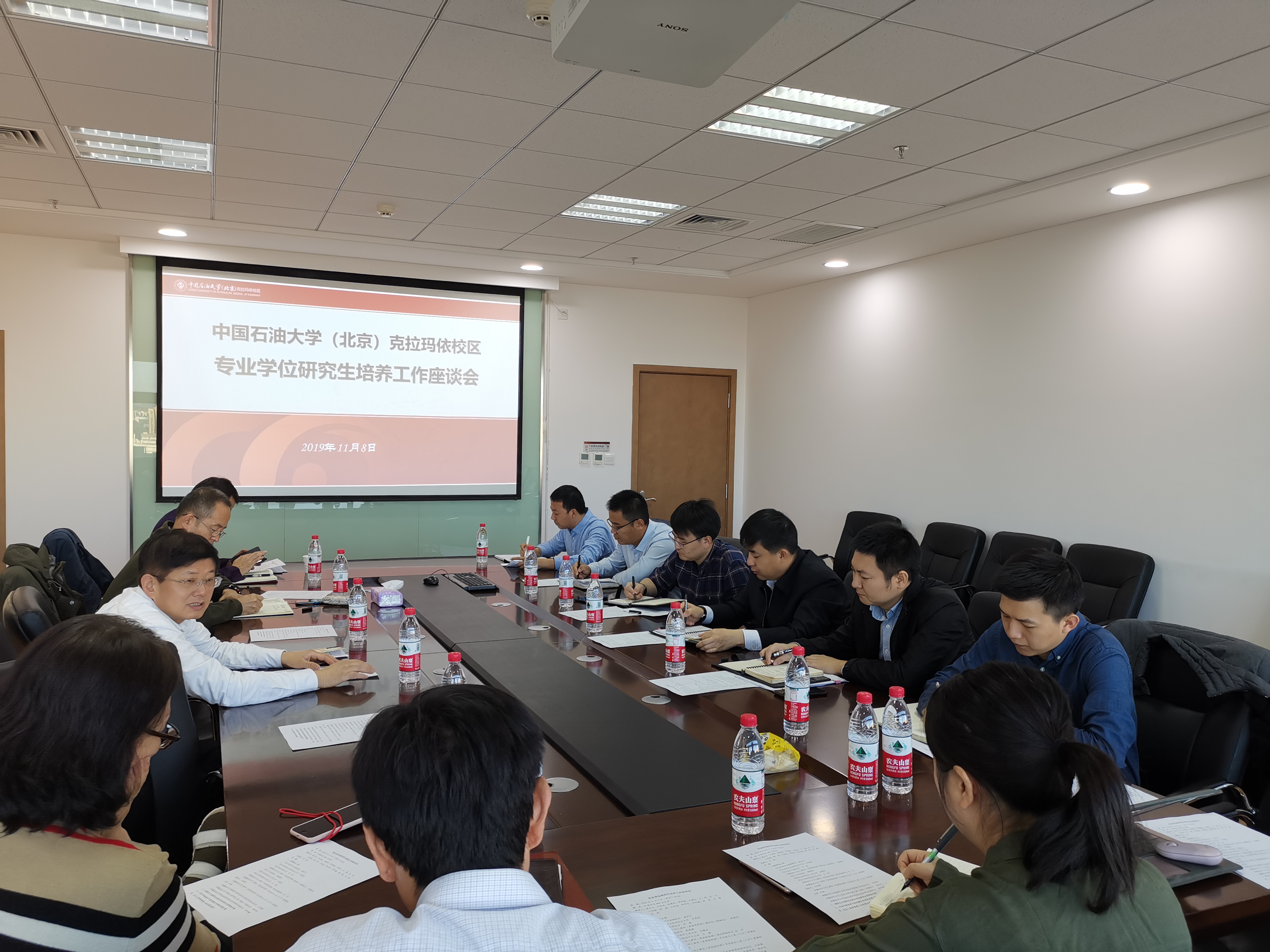 11月8日上午,校区召开了“专业学位研究生培养工作”专项座谈会,新疆油田公司人事处副处长郭建伟及相关研究院管理人员参加了会议。与会人员就如何改进校企联合培养研究生模式、提升研究生培养质量等方面进行了讨论,重点研讨了导师组设置方案、工程管理硕士培养等内容。校企双方进一步明确:将持续加强合作,注重产学研结合,完善研究生培养体系;突出能源特色、地域特色和学科特色,落实高层次、应用型人才培养目标;落实主体职责,提升研究生培养质量。