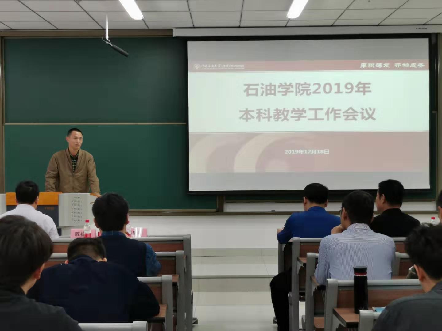 为全面贯彻全国教育大会、新时代全国高等学校本科教育工作会议精神,深入贯彻落实校区本科教育工作会议精神,12月18日石油学院本科教育工作研讨交流会在C6励志楼召开。校区党工委常务副书记陈桂刚,教务与国际交流部主任杨皆平和石油学院全体教职工参加会议。会议由石油学院副院长胡远彪主持。
