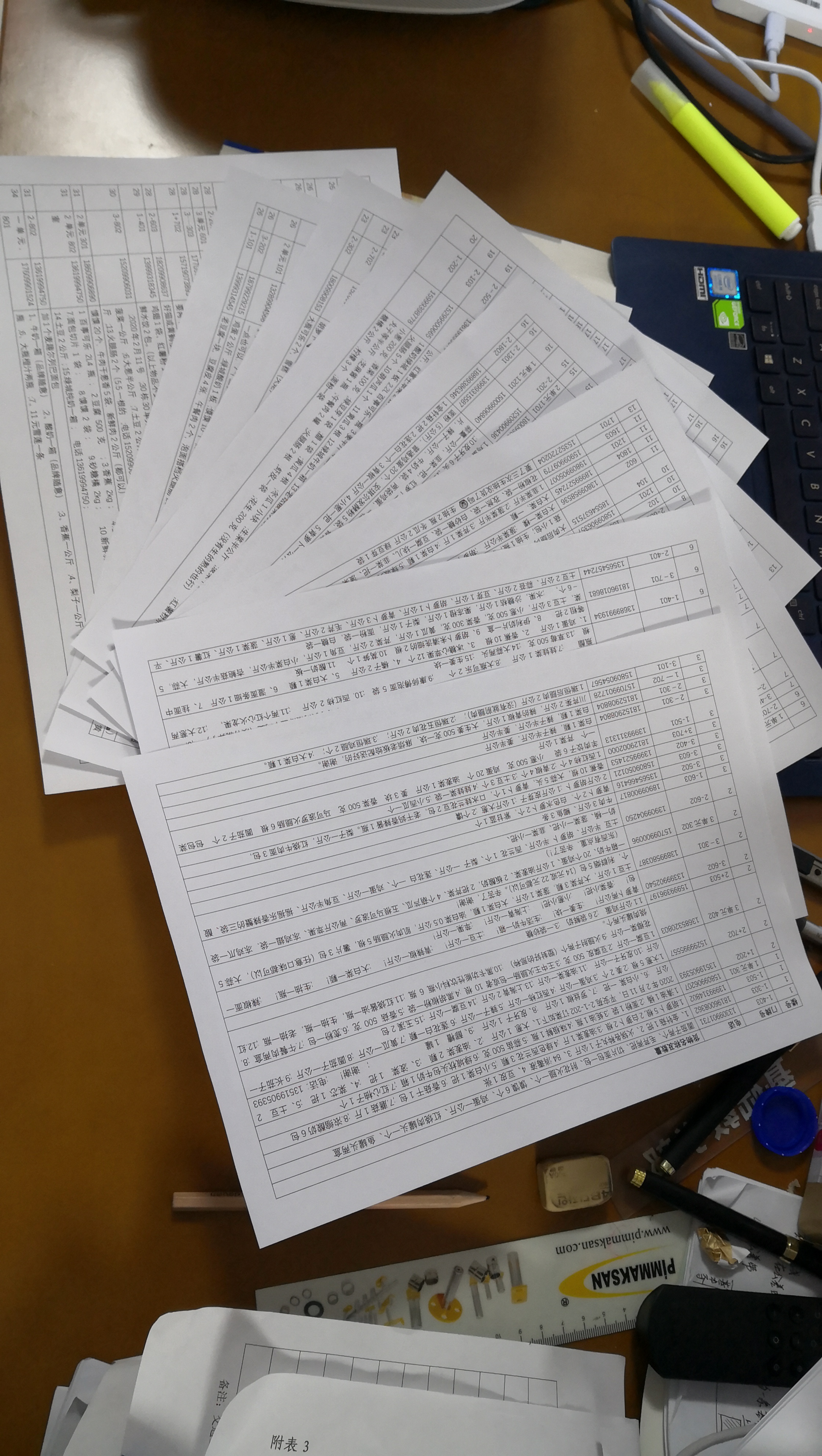 在居家封闭休息期间,系统每日订单数都在200个以上,刘建新老师每天都要整理系统后台的订单数据,常常工作到深夜。他不仅要准确地统计出各类物资的需求,还要将大家报错或者临时要加减的物资数目及时更新。有时居民对商家配送的蔬菜水果不满意,刘建新老师知道后也会尽力去安抚和协调;平日里大家反映的一些问题,他也会尽量帮助大家和社区工作人员协商解决。在包括刘建新老师在内的志愿者的共同努力下,康城平安苑社区不仅高效、顺畅供应居家封闭休息期居民日常生活必需品,而且老人、小孩等特殊人群的个性化采购需求也得到了满足。