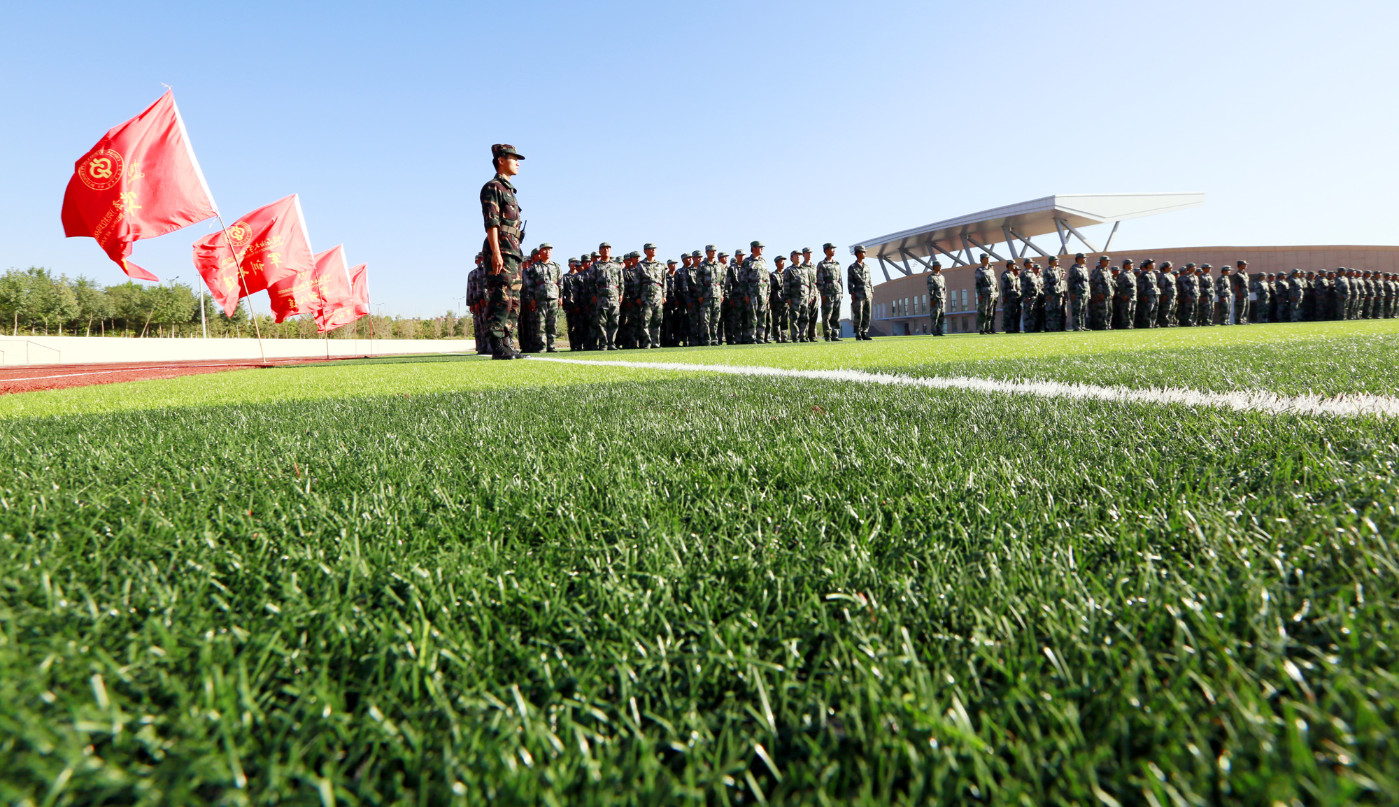 2016年8月29日,2016级新生军训开训典礼在大学城体育馆举行,正式宣告为期14天的军训开始了。这一年的军训教官很特别,他们是来自中国石油大学(北京)的退伍大学生组成,亦师亦友的身份让教官与学生之间少了份隔阂,多了份一脉相承的亲近。谈到军训,软件工程专业2016级学生胡雪婷作为当年的“训练标兵”至今记忆犹新,“两周的时间里,我们参加了队列、阅兵式、野外拉练、军体拳、警棍盾牌术训练,还学会了唱军歌。非常幸运能遇到了这些好的教官,因为他们还是我们大学生活中很好的学姐学长。军训带给我的,有汗水有泪水,有快乐也有咬着牙的坚持,比起晒黑其实更害怕结束,这是属于我们美好而又难忘的青春记忆!”