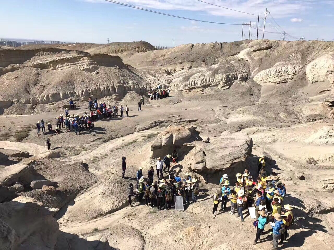 “2017年的暑假,是我第一次参加野外地质实习!”资源勘查工程专业2016级学生魏玮至今想起都很激动,“我们有七处实习地点,分布在准噶尔盆地西北缘。记忆最深的是普通地质实习的最后一天,那天我们的目的地是位于和什托洛盖盆地的龙脊谷。这是一个很少见的构造景观,地层受构造运动以及砂泥岩的差异风化形成了这样独特的自然风貌。站在它西北段的白砾山远远望去,直立的砂岩如同一排排远古剑龙脊背上的板棘,看起来就像是一条条在大地上翻滚的‘彩龙’。”野外地质实习是对资源勘查工程专业学生学习专业知识的实践检验,也是学生掌握“三基”(基本概念、基本方法、基本技能),进行“三练”(练思想、练作风、练水平)的重要途径。为了让学生们拥有更加系统和丰富的实习内容,从2016年7月开始,石油学院地质系的老师们先后进行了二十余次野外地质踏勘。他们的足迹遍布了准噶尔盆地西北缘,包括柳树沟、深底沟、吐孜沟、沥青脉、油砂矿、黑油山不整合沟、黑油山沟、科克呼拉路线、白杨河大峡谷、白杨河冲积扇等地,掌握了第一手的实践教学资料,极大地丰富了野外地质实习课程的内容。