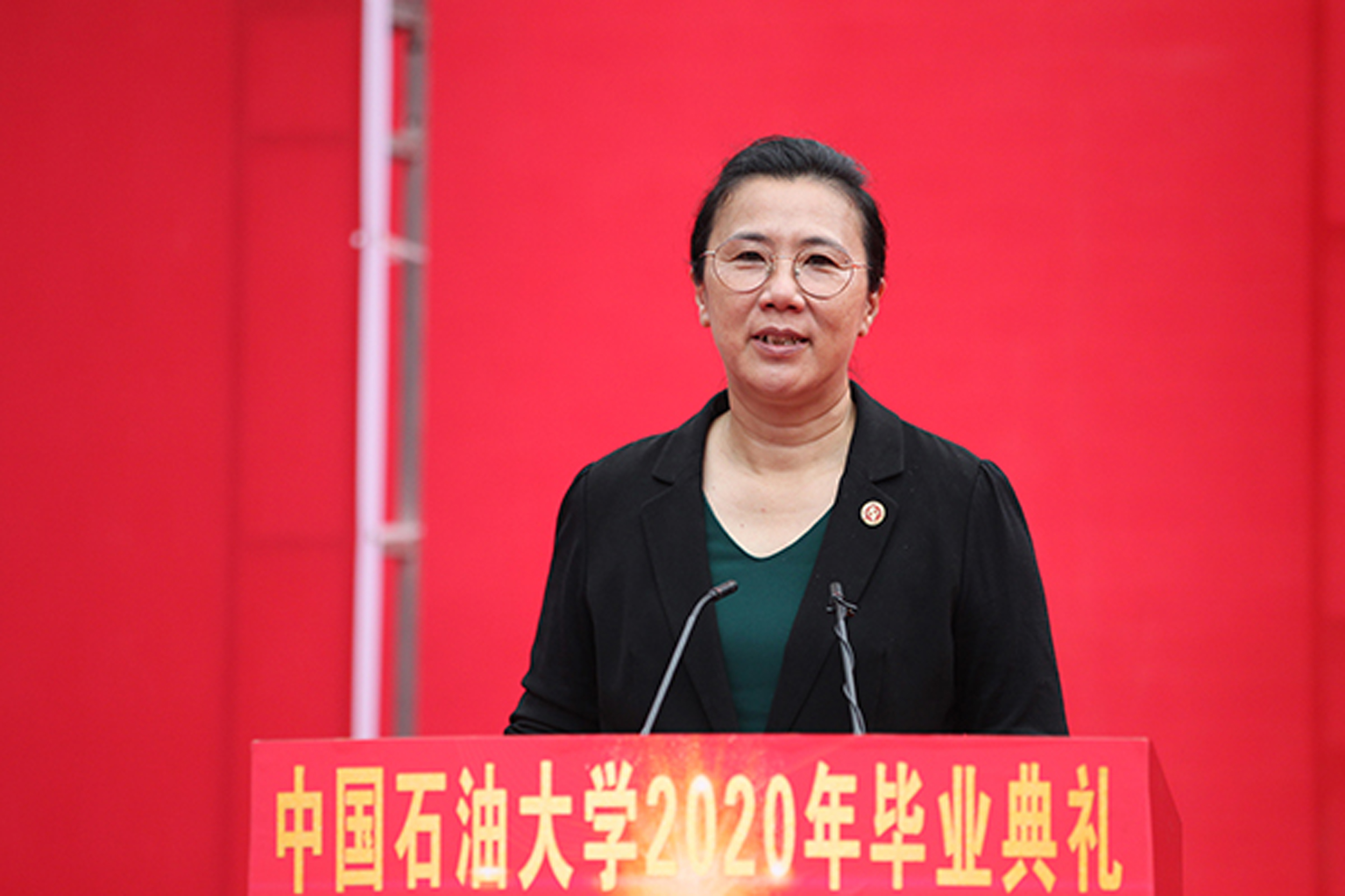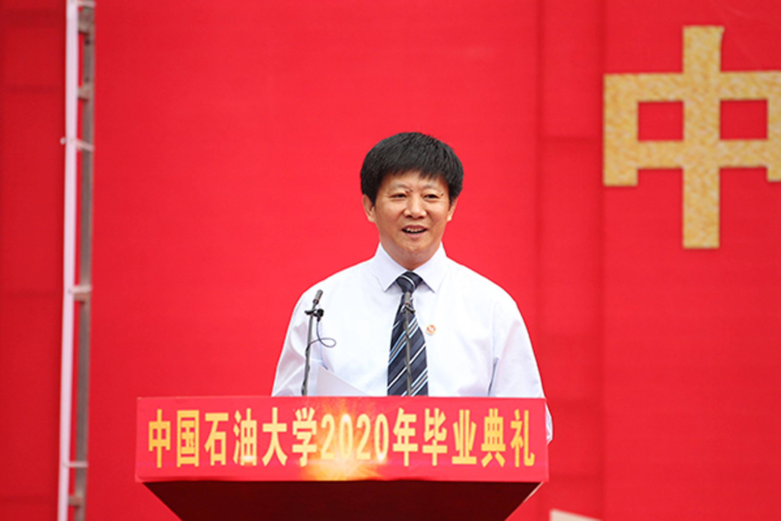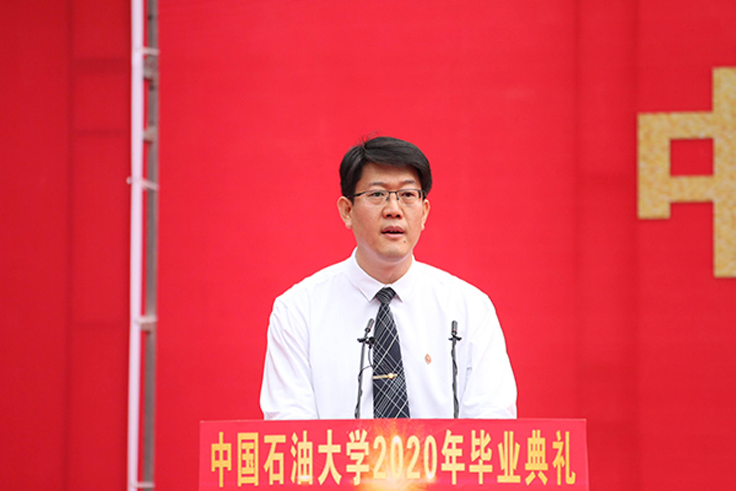 副校长李根生宣读了“授予毕业生毕业证书、结业证书以及学位授予的决定”。2020届中石大毕业生共有2345人获得学士学位,1723人获得硕士学位,127人获得博士学位。受疫情影响,学校无法按原计划举办学位授予仪式,因此特意为每位获得学位的毕业生准备了专属学位服,2020届毕业生可以在疫情后任选一年回校参加当年的学位授予仪式。