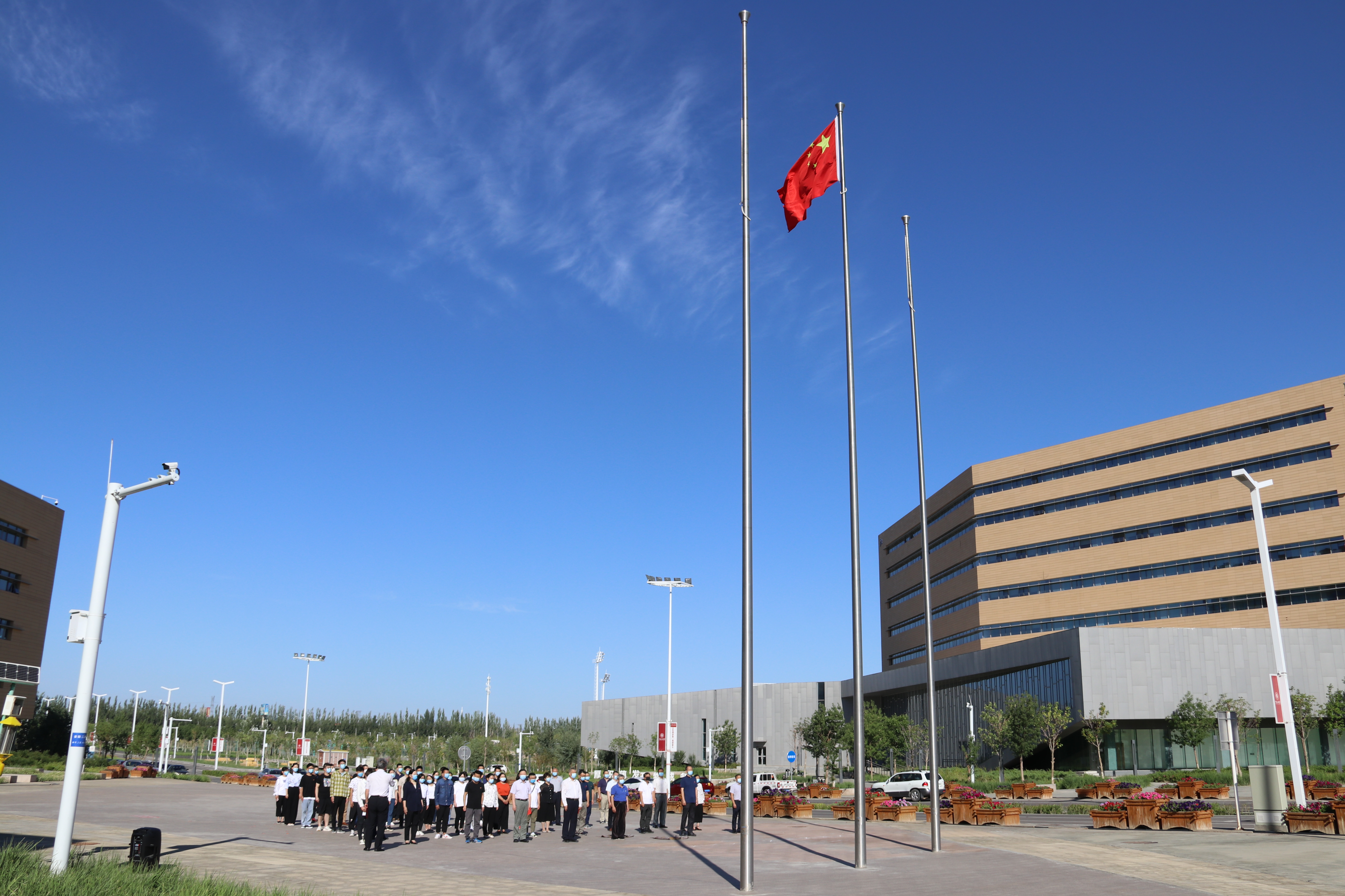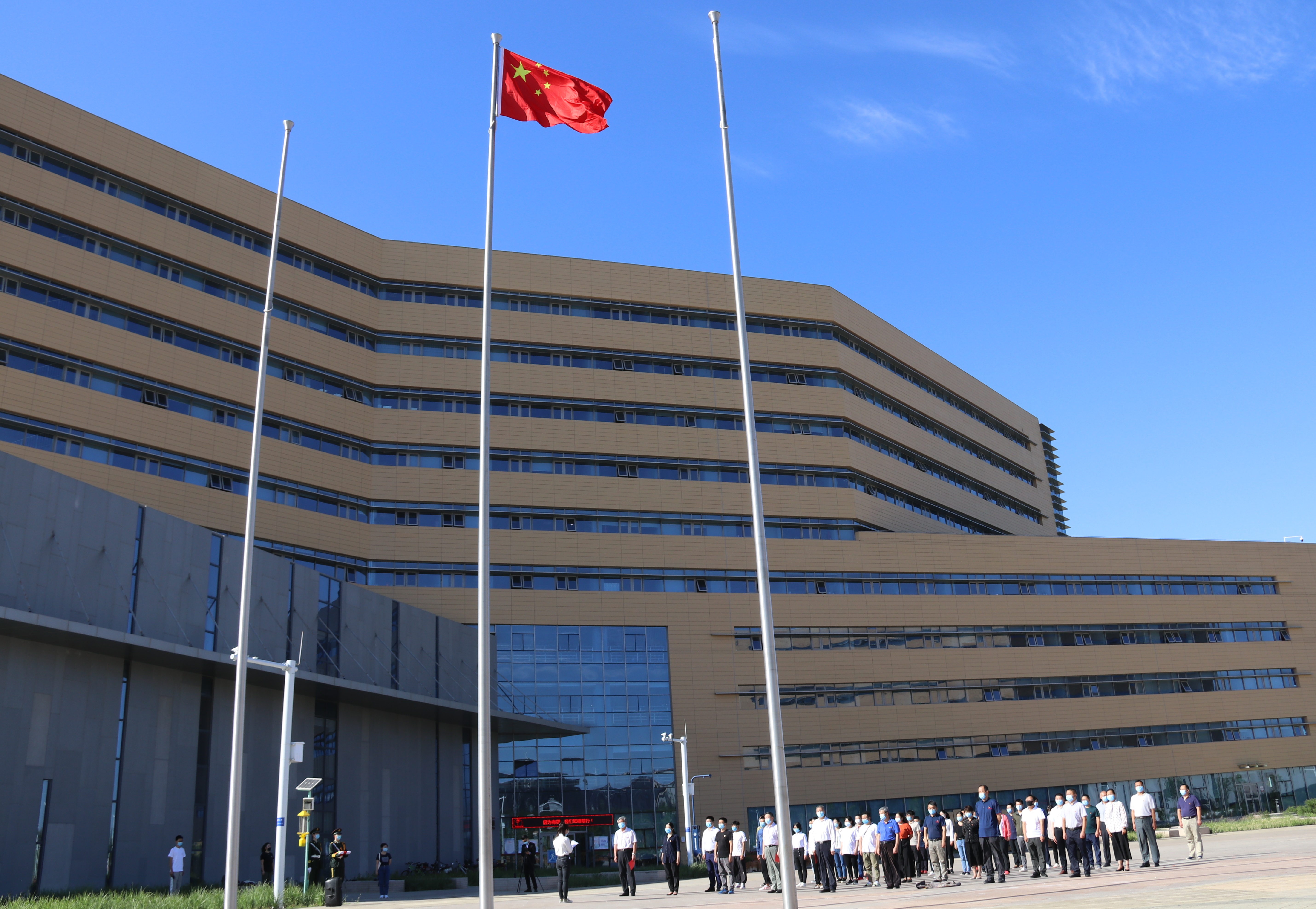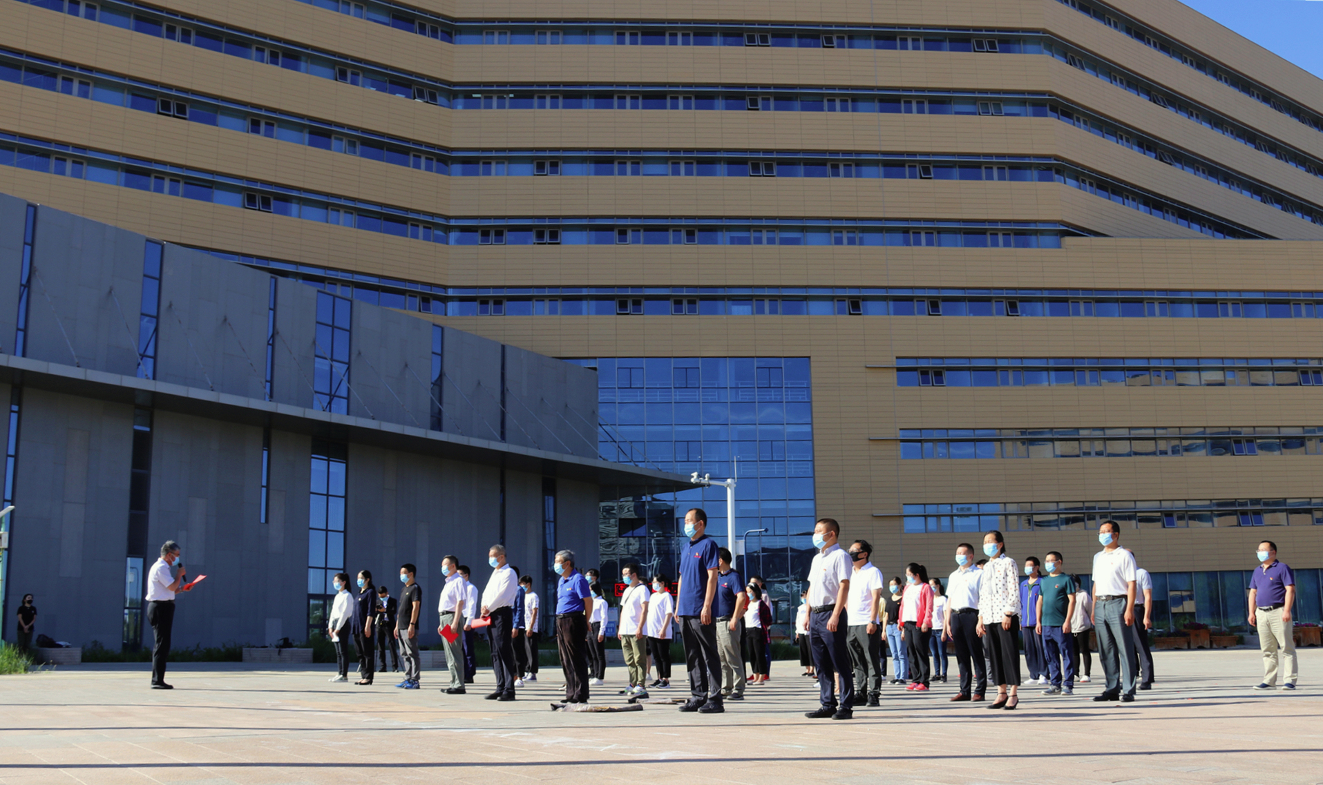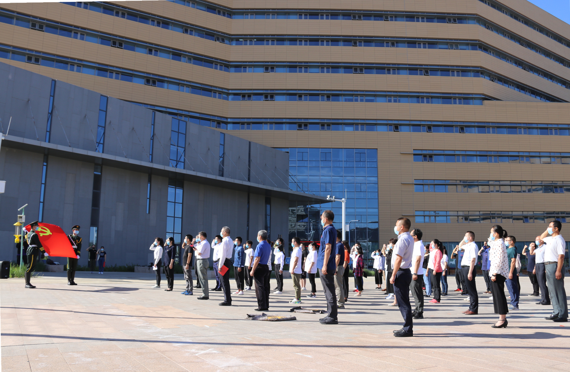上午10时,迎着清晨的朝阳,国旗仪仗队员英姿飒爽,迈着铿锵的步伐护送国旗走向升旗台。鲜艳的五星红旗冉冉升起,在场党员庄严肃立,齐声高唱国歌。