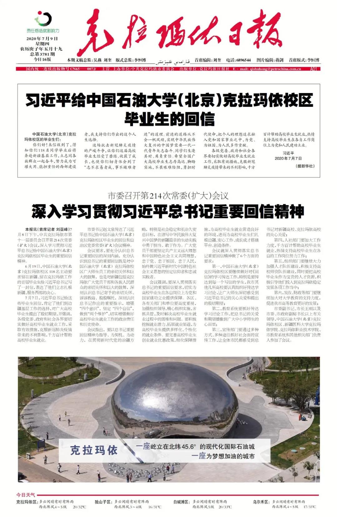 7月8日中午,这条喜讯从教室到宿舍、从微信群到朋友圈,伴着一场酣畅淋漓的盛夏喜雨,瞬间传遍了整个中国石油大学(北京)克拉玛依校区,传遍了克拉玛依市。