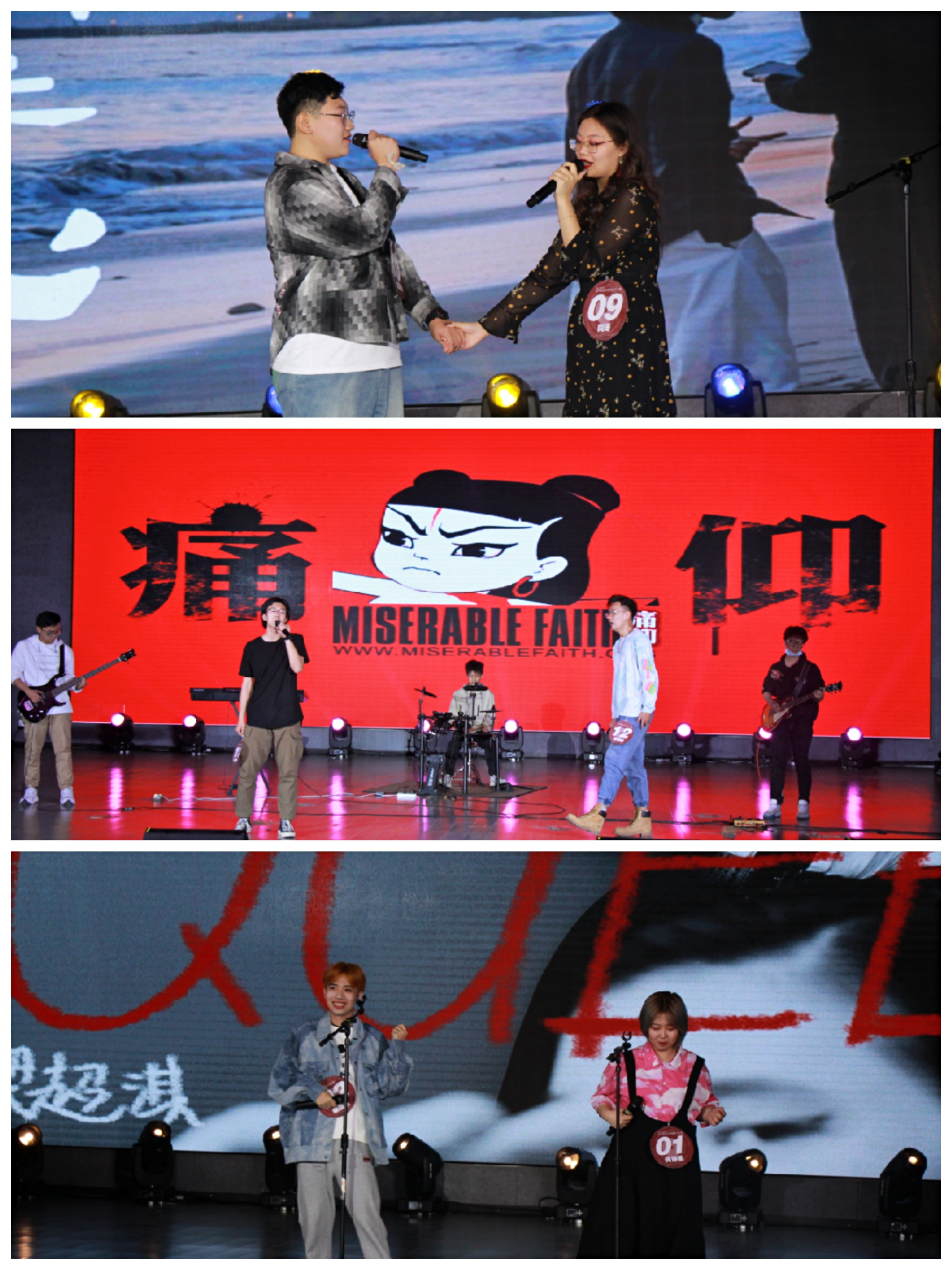 决赛在第四届大赛优秀选手代表王源培同学带来的rap演唱中拉开序幕。比赛分为两个环节,参赛选手分别以两两对唱和个人演唱的形式自选歌曲现场演绎,评委老师综合选手的舞台表现、演唱技巧等因素进行评分。来自文理学院的双胞胎组合演唱以及勘查20-2班李宇轩带来的一首浑厚大气的《等待》给观众留下了深刻印象。整场比赛高潮迭起、精彩纷呈,选手们在舞台上火力全开、各放异彩,灯光与音乐交织,为观众带来了一场难忘的视听盛宴。