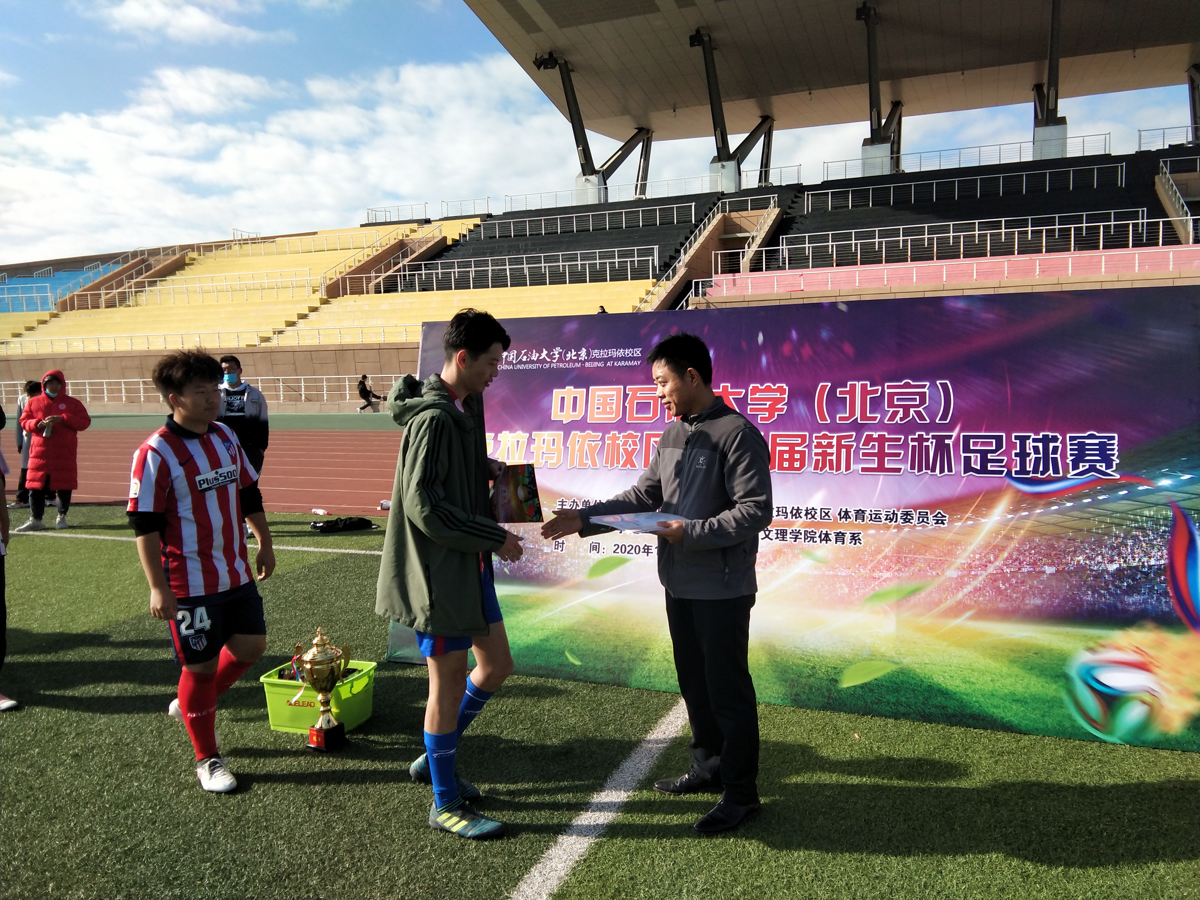 比赛在红旗操场和风雨操场同时进行。经过小组赛和淘汰赛的激烈角逐,最终,资源与勘查工程联合代表队获得冠军,石油工程代表队获得亚军,会计俄语联合代表队获得季军,机械过控联合代表队获得“精神文明奖”。闭幕式上,石油学院专职副书记林强为冠军队伍颁奖并与同学们合影留念。