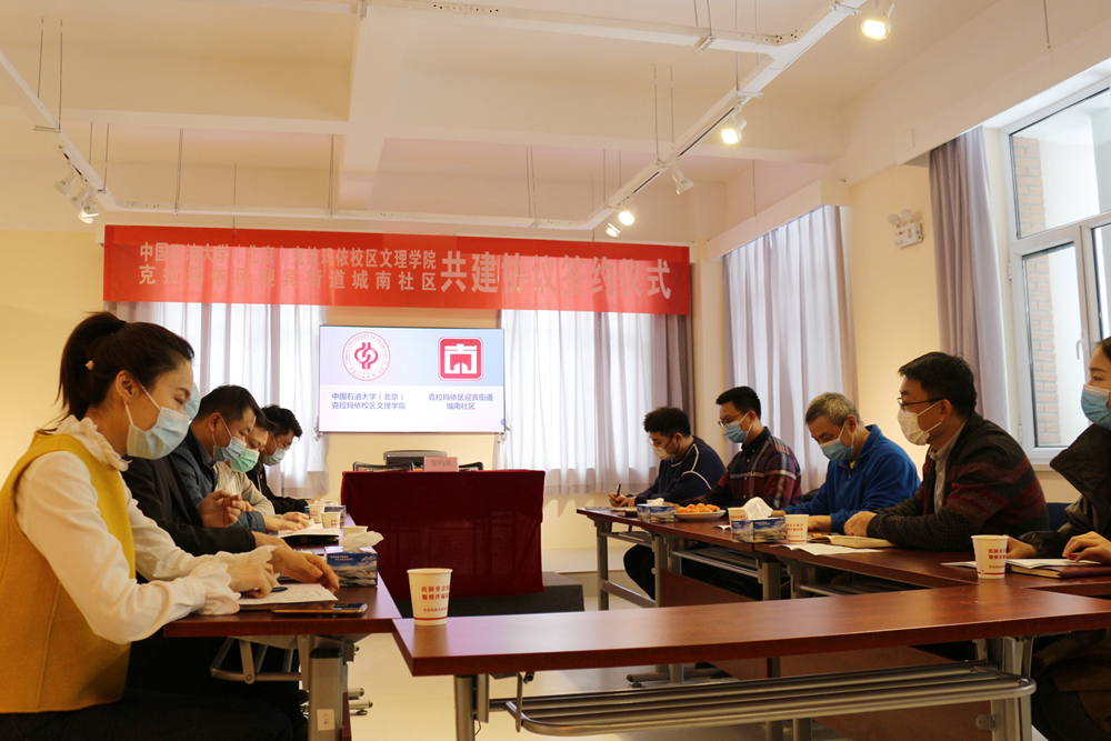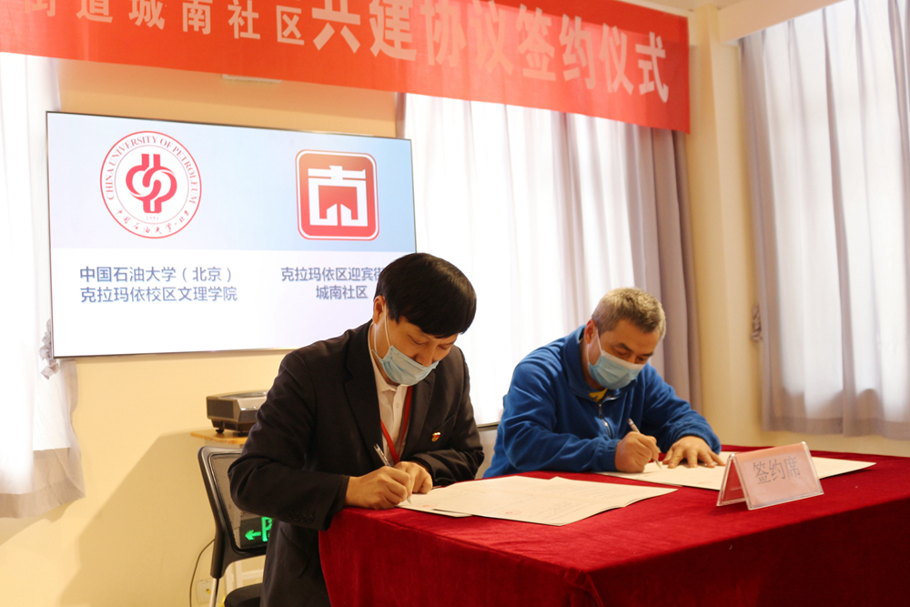 为深入贯彻落实第三次中央新疆座谈会会议精神及习近平总书记重要回信精神,搭建学生实习实践、创新创业和志愿服务平台,培养学生认识新疆、了解新疆、热爱新疆、服务新疆的家国情怀,1月8日,校区文理学院与克拉玛依市城南社区签订《校社合作共建协议》。文理学院院长张毅、专职副书记徐长亮及辅导员代表参加了签约仪式。克拉玛依区委组织部副部长王海庆、迎宾街道办事处主任韩亮、迎宾街道副主任梁一彬以及城南社区第一书记夏永和等一并出席此次活动。