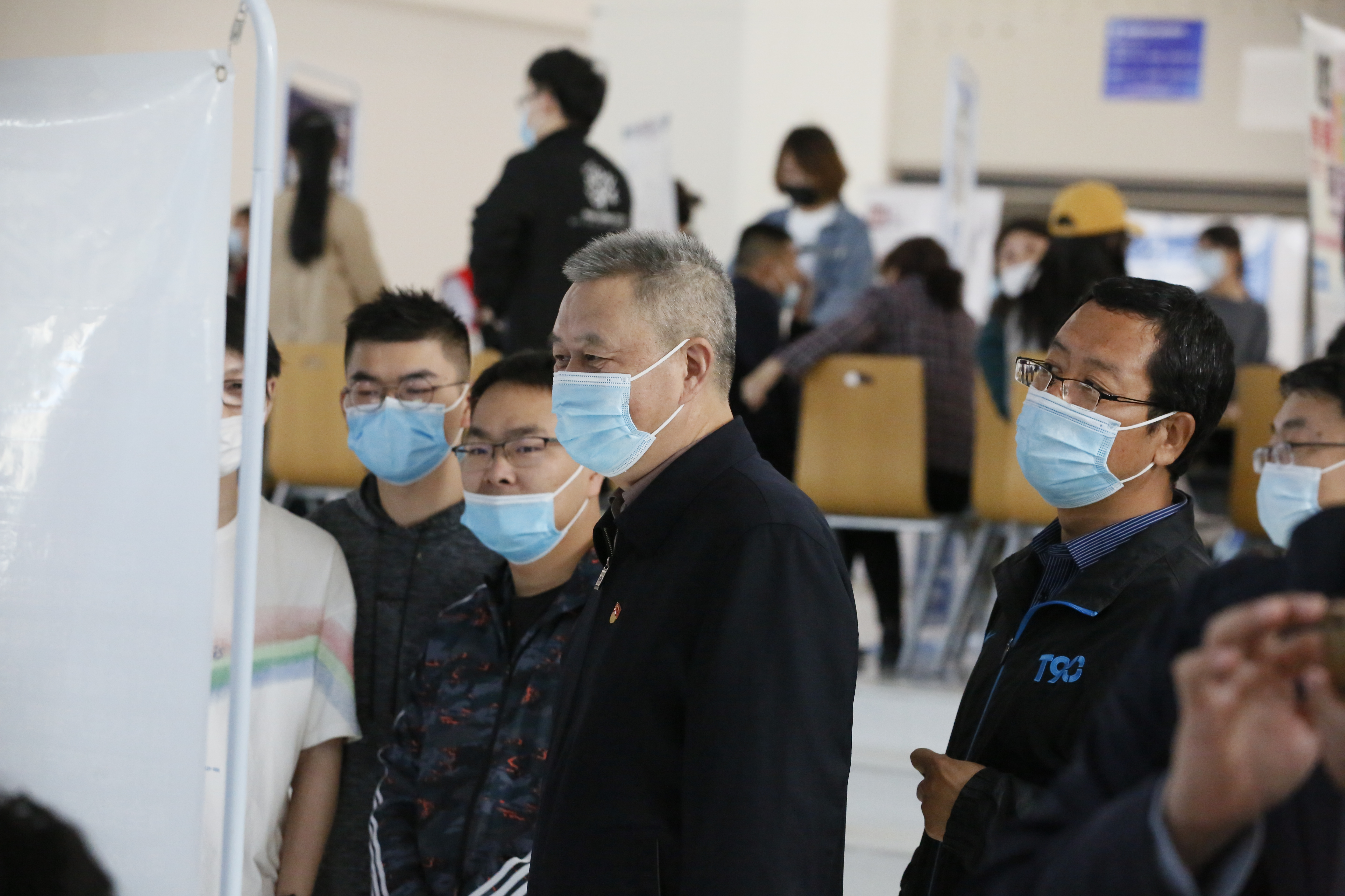 校区党工委书记、管委会主任陈大恩,党工委常务副书记陈桂刚来到双选会现场调研就业情况,与用人单位负责同志和应届毕业生交流,了解企业用人需求,询问学生就业意向,积极听取大家对双选会和毕业生就业工作的意见和建议。