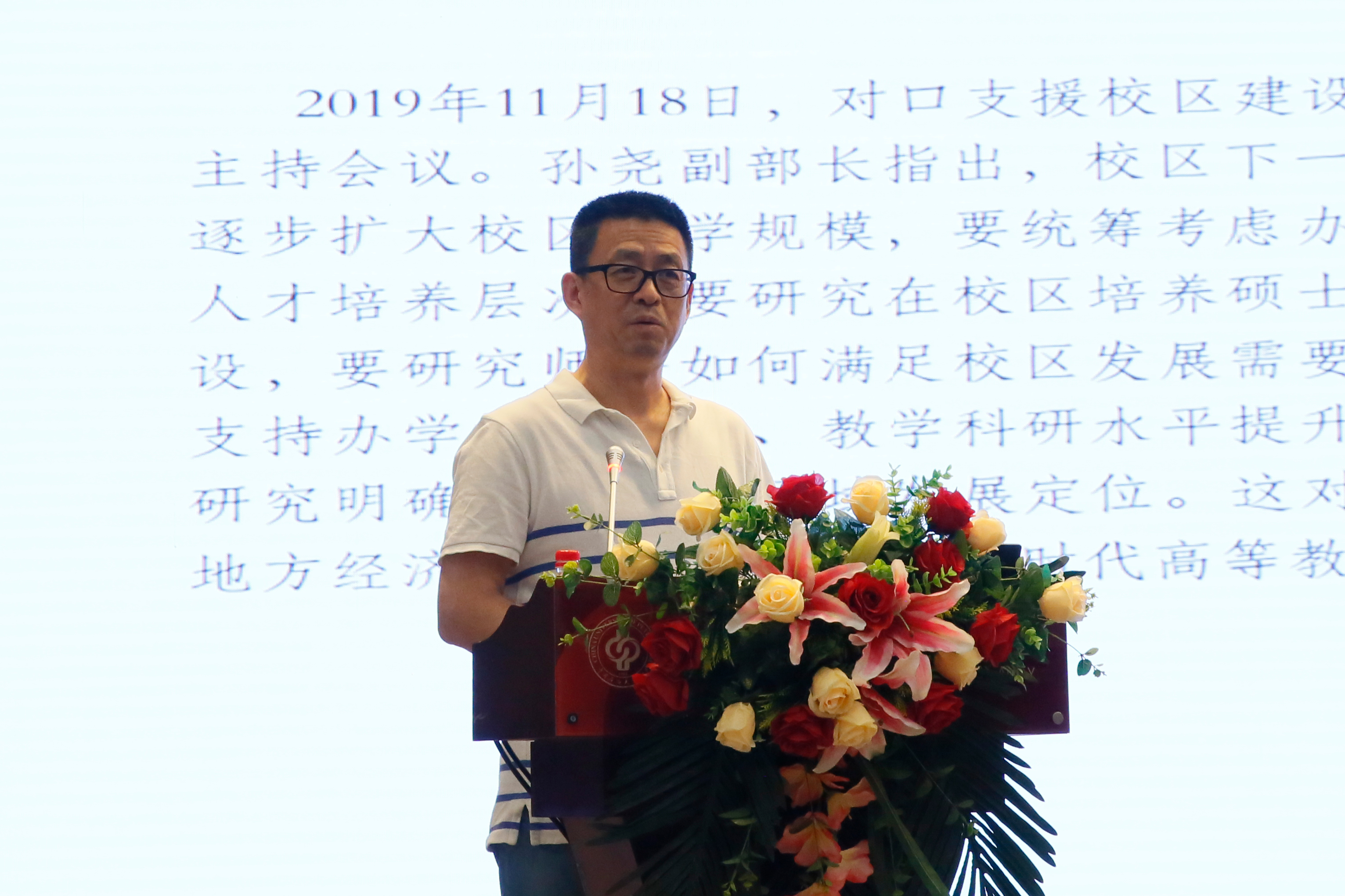 管委会副主任肖磊从“机遇与挑战”、“基础与优势”、“问题与差距”、“指导思想与发展目标”、“任务与举措”五个方面简要介绍了校区“十四五”事业发展规划设想。