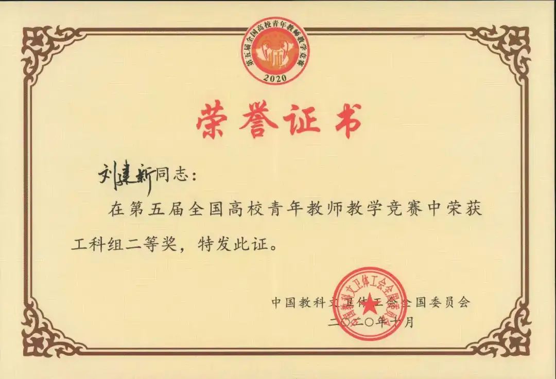 凭借精湛的专业素养、生动的教学案例和深入浅出地课堂讲解,刘建新老师获得了第五届全国高校青年教师教学竞赛工科组二等奖的好成绩,但他认为自己仍有进步的空间。在与各省区选手同场竞技过程中,刘建新老师亲身感受到了诸多优秀教师的风采,而这也督促着他在今后的教学工作中不断充实与完善自己。