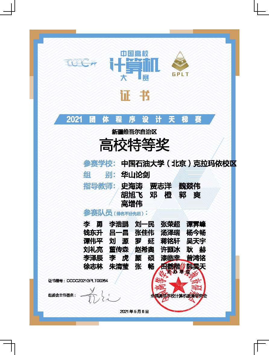 据悉,本次比赛共有来自全国30个省级行政区的347所高校组成的1100支队伍10946位学生参赛。来自校区石油学院2018级软件工程专业、2018级大数据专业、2019级和2020级计算机类专业以及文理学院2020级英语专业的40名同学组成了 4支代表队参赛。在史海涛、贾志洋、魏燚伟等优秀指导教师和参赛学生的共同努力下,校区在今年的比赛中又创佳绩,有助于提高校区学生参加学科竞赛的积极性,激发学生对计算机编程及软件开发的学习热情。