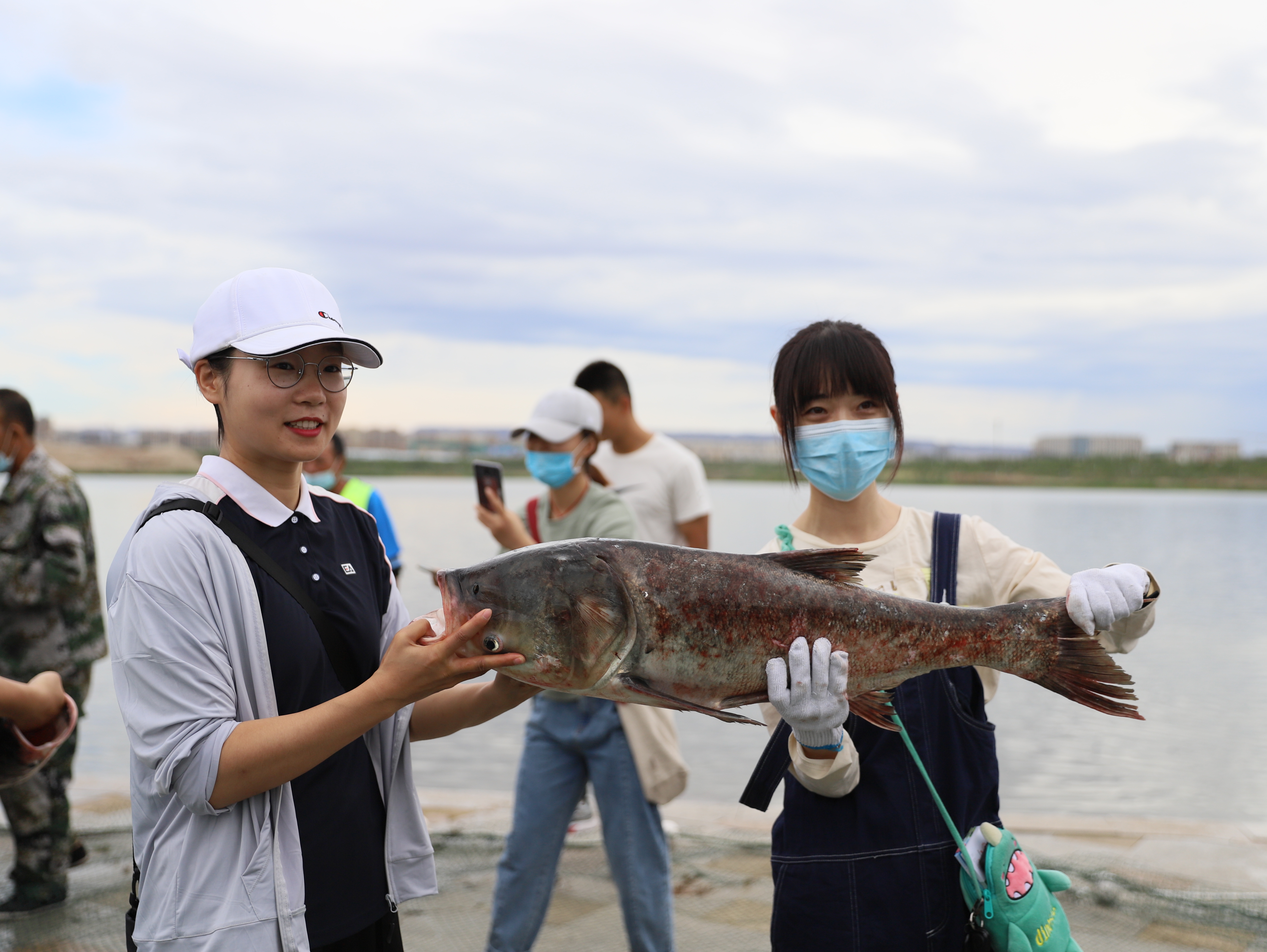 6月的红山湖,碧波荡漾、风光旖旎。“收网喽!一、二、三,拉!”伴随着一声响亮的口号,上午11时,捕鱼活动正式开始。校区领导与毕业生们站成一排,齐心协力拉起沉入湖中的渔网。随着渔网慢慢收拢,一条条大鱼翻腾着跃出水面,雪白的鳞片在阳光下闪着耀眼的银光。现场欢呼声此起彼伏、不绝于耳,师生们共同收网的身影构成了红山湖畔一道靓丽的风景线。短短一小时,师生们共捕捞到包括花鲢、白鲢、鲤鱼等品种在内的1200多斤鱼,其中最大的“鱼王”足有16斤重、达半人之高。面对一条条鲜活跳动、肥美硕大的鱼儿,师生们纷纷涌上前来,抱起大鱼合影留念,记录下这终身难忘的幸福时光。毕业生们纷纷表示,“居然能在戈壁看到这么壮观的捕鱼场景,还是在自家学校!真是大饱眼福了!”“真是一段美好的毕业记忆,这样的送别对我们来说既特别,又温馨。”