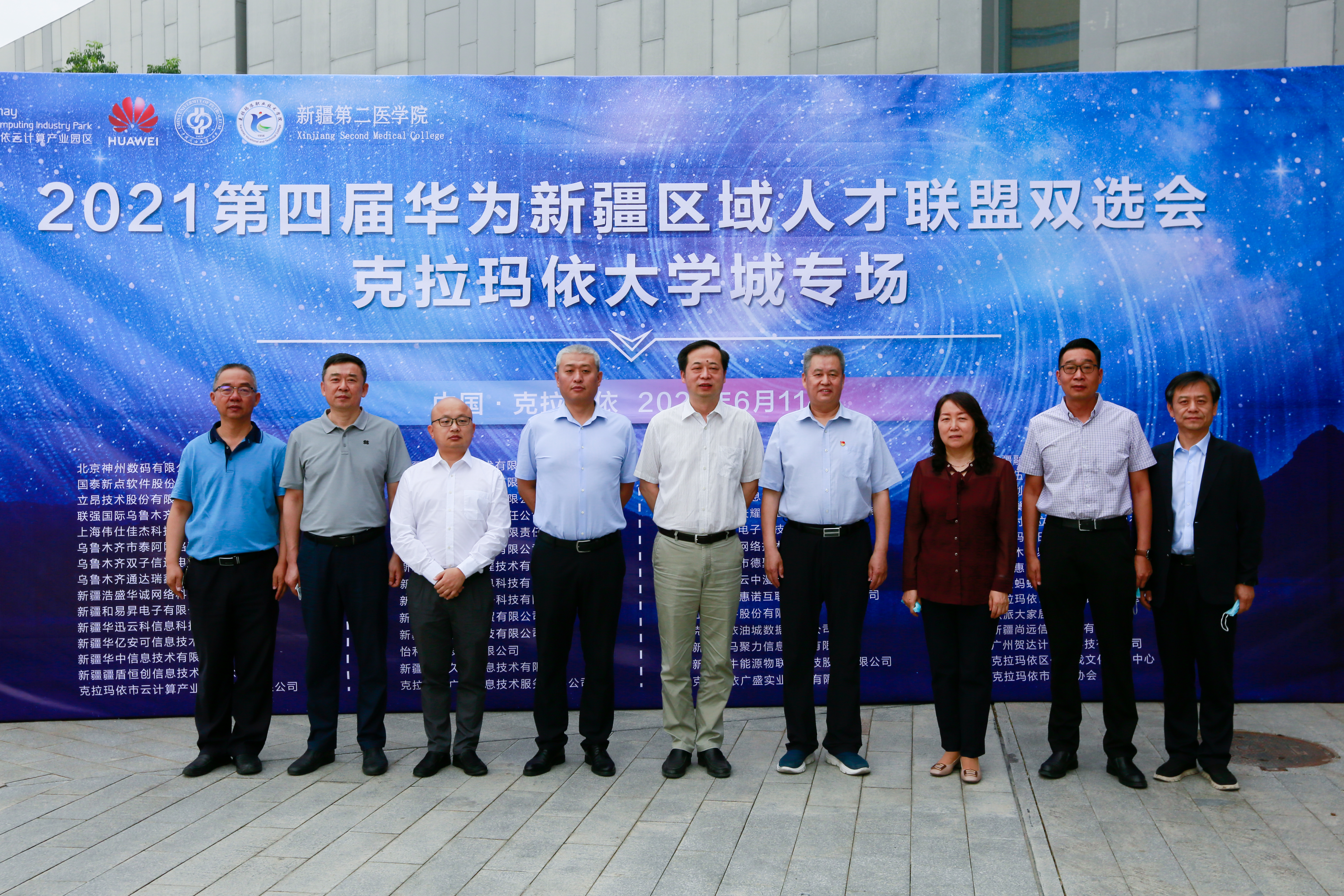 6月11日上午,第四届华为新疆区域人才联盟双选会在大学城顺利举办。克拉玛依市市委常委熊跃伟,华为新疆数字政府业务部总经理许荣斌,校区党委书记、校长陈大恩,克拉玛依市云计算产业园区管委会党工委副书记、副主任罗炜,华为克拉玛依市总经理刘杰,华为新疆代表处生态合作部人才发展经理李华平等共同出席开幕式,60余家企业代表以及500余名高校学生参加了此次招聘会。