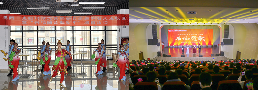 优秀传统文化是中华民族的“根”和“魂”,为推动民族文化交流互鉴,引导师生坚定文化自信,石油学院积极打造文艺演出平台,借助文艺表演推动各民族文化交往、交流、交融。12月17日晚,“石油赞歌”政校企联合文艺晚会在J2国际交流中心报告厅圆满落幕。晚会通过民族歌舞、小品、器乐演奏等形式多样的表演,使师生领略和感悟到了民族文化的内涵和魅力。同时,学院创新活动形式,于12月19日邀请新疆生产建设兵团歌舞剧团“文艺轻骑兵”来校区第三学生餐厅开展“送文艺下基层”快闪活动,以生动新颖、接地气的方式让校区师生在进餐的同时享受了一场“文化盛宴”。