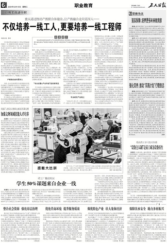 “对即将毕业的学生来说,到企业中做毕业设计、写论文,综合应用知识的能力、解决生产实际问题的能力得到了有效锻炼,也有助于培养学生的职业素养,明确未来职业发展方向。”该校教务部负责人说。