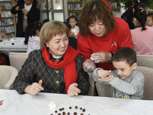 2月24日,元宵节,克拉玛依市克拉玛依区图书馆活动室里,“我们的节日”主题活动如约开场,人们聚在一起猜灯谜、包汤圆。