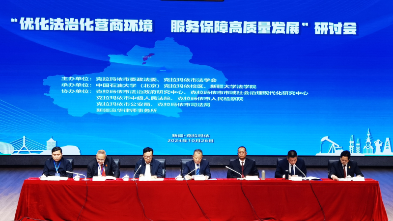 石榴云/新疆法治报讯(记者 郭玉强 报道)10月26日,由克拉玛依市委政法委、克拉玛依市法学会主办,中国石油大学(北京)克拉玛依校区、新疆大学法学院承办的“优化法治化营商环境 服务保障高质量发展”研讨会在克拉玛依举行,自治区党委政法委副书记黄荣军,克拉玛依市委副书记、政法委书记、市法学会会长王冰出席并讲话。
