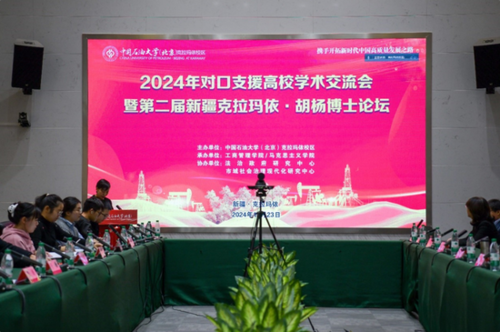 11月23日,“2024年对口支援高校学术交流会暨第二届新疆克拉玛依·胡杨博士论坛”以线上线下相结合的方式在校区举行。