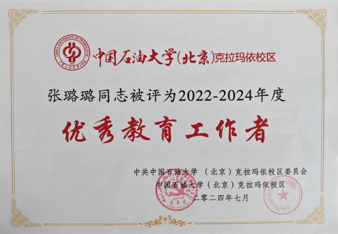 2019年,张璐老师入职中国石油大学(北京)克拉玛依校区。工作期间,她先后负责本科招生、四六级考试组织、推荐免试研究生等多项重要工作,目前主要负责校区本科招生事务。