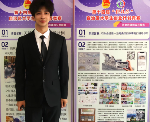创新创业路上,刘承欣以“闯将”之姿直面挑战。2022年带队冲击中国国际大学生创新大赛时,项目突遇技术瓶颈,他既当“心理导师”鼓舞团队士气,又化身“技术先锋”查阅前沿资料、求教行业专家,最终以创新方案荣获中国国际大学生创新大赛国家级铜奖、自治区金奖。此后,他带领团队“乘胜追击”,在计算机设计大赛获国家级二等奖、全国市场调查与分析竞赛获国家级三等奖,最终摘得40余项荣誉。他作为校区代表亮相“青年红色筑梦之旅”全国启动仪式,这个扎根新疆基层的“地学科普”项目,为乡村儿童讲述“沧海桑田的故事”,孵化出校区首个红旅赛道国奖,展现科创与公益的双向奔赴。