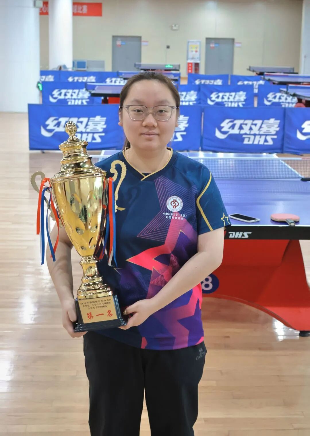 2022年李艾齐考入中石大,就积极加入了校乒乓球队,开启每周三次,一次两小时的规律训练。截止到大三,李艾齐已累次参与训练180余次,总时长达380h以上。2023年,为校区荣誉,李艾齐暑假曾自愿留校一个月,参与球队集训,最终为校区获得自治区乒乓球女单女双两枚金牌。2024年的自治区比赛中,尽管受了严重腰伤,李艾齐坚持临时扎针、喷阵痛药,在与新大的团体决赛中拿下两分,带领校区获得自治区团体冠军。