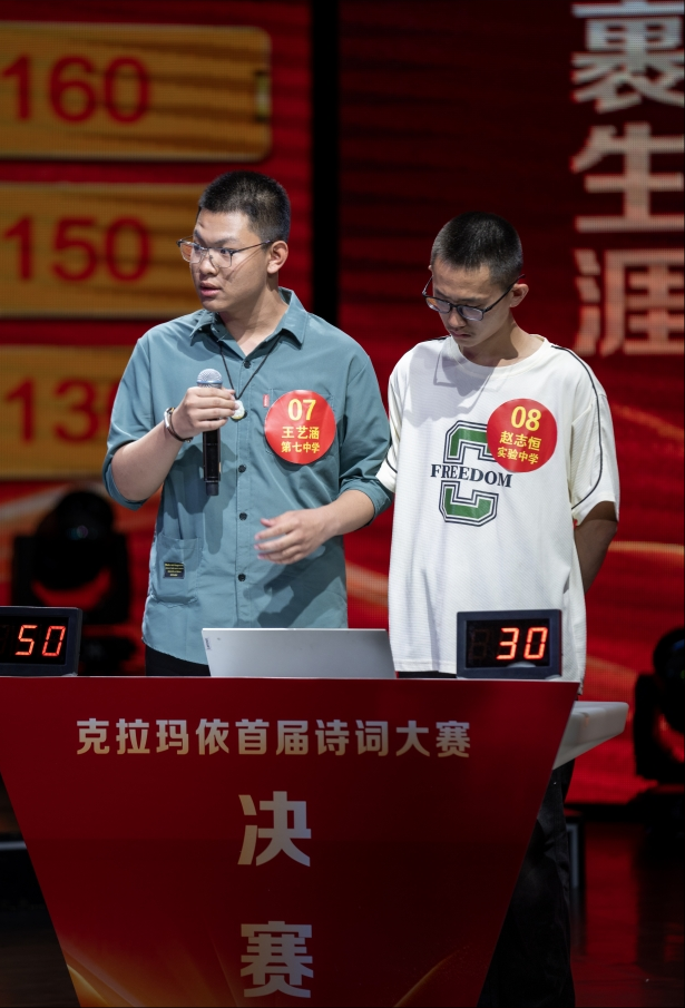 风华正茂·诗润油城”克拉玛依首届诗词大赛暨自治区成立70周年、克拉玛依油田勘探开发70周年系列文化活动中学组正在比赛。