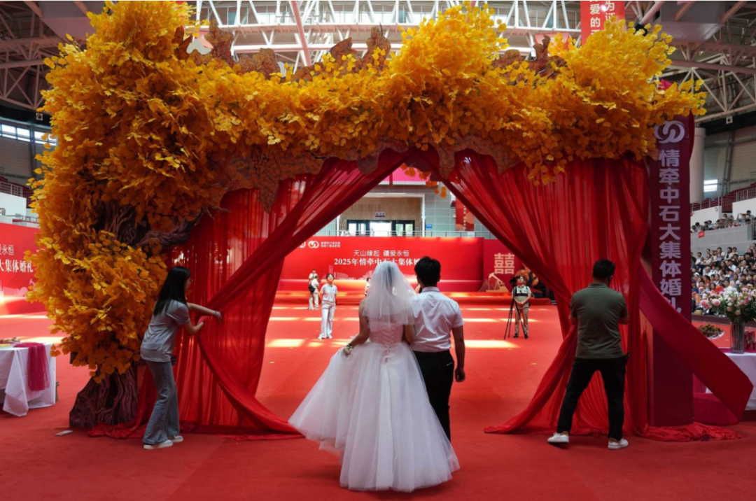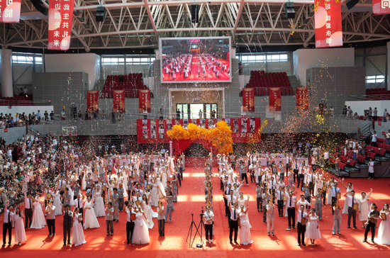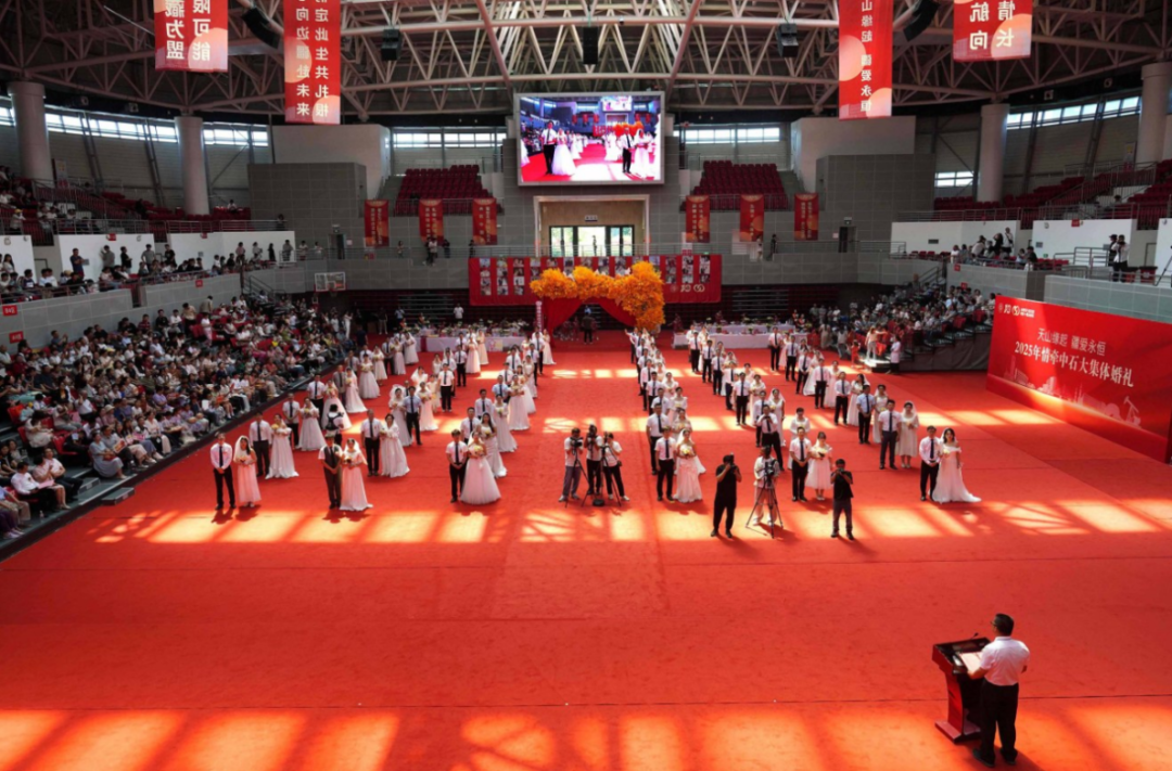 当天,由中国石油大学(北京)克拉玛依校区主办的“天山缘起 疆爱永恒”情牵中石大集体婚礼在该校区红山湖体育馆举行。