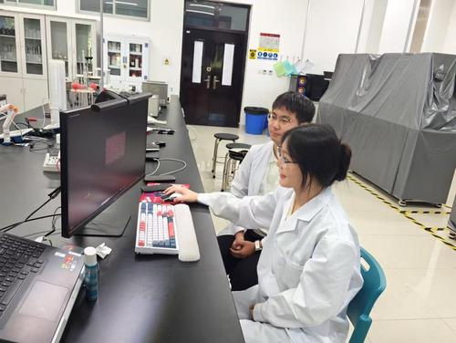 李智老师和同事在实验车间操作(照片由李智提供)
