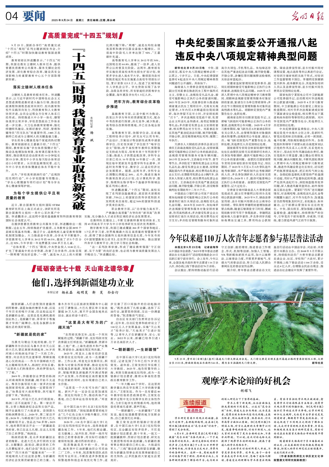 自治区有关部门负责同志告诉记者,近年来,自治区党委和政府设立了100亿元人才发展基金,实施“天山英才”培养计划、“天池英才”引进计划等,让青年人才在新疆安身、安心、安业。2022年以来,新疆已培养引进1万余名高层次人才。