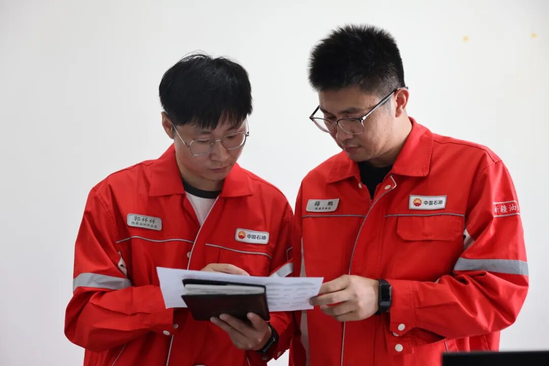 刚到现场时,郭祥祥每天和工人师傅顶着烈日在沙漠里穿梭,看到汗水在他们的红工服上结了一层又一层盐渍,穿在身上笨重且味道呛鼻,可他们顾不上这些,目光始终聚焦着油田生产的每一个环节,这种对工作的执着让郭祥祥真切感受到石油人艰苦奋斗、苦干实干、敬业奉献的精神底色。 转正后,郭祥祥一直在地质研究中心动态室从事老区油藏动态研究工作。这一年对他来说充满挑战,小到油藏的日常注采调控,大到油藏稳产方案的编制,对于刚顶岗的郭祥祥都不容易。