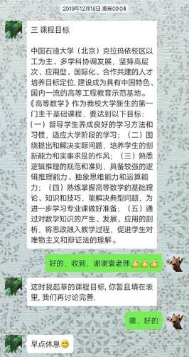 在讲义编写前期,袁海荣教授还为数学系全体教师做了一次LaTeX应用软件的操作培训,亲自给电子版讲义建立头文件以及编写环境,这些微小的工作细节无不体现出袁老师作为科研工作者的务实风格。在撰写自治区一流本科课程申报书的时候,他更是事无巨细,全程参与每一项工作,和大家一起逐字逐句修改申报书。有次我在夜里十一点半发给他申报书初稿,原以为那时袁海荣教授已经休息了,没想到他在凌晨两点半就把修改稿发给我了,而第二天上午他还有四节高数课要上,这让我非常感动。他来校区不仅仅以教师的身份给学生传授了知识,更重要地是他以学者的风格感染了每一位老师。