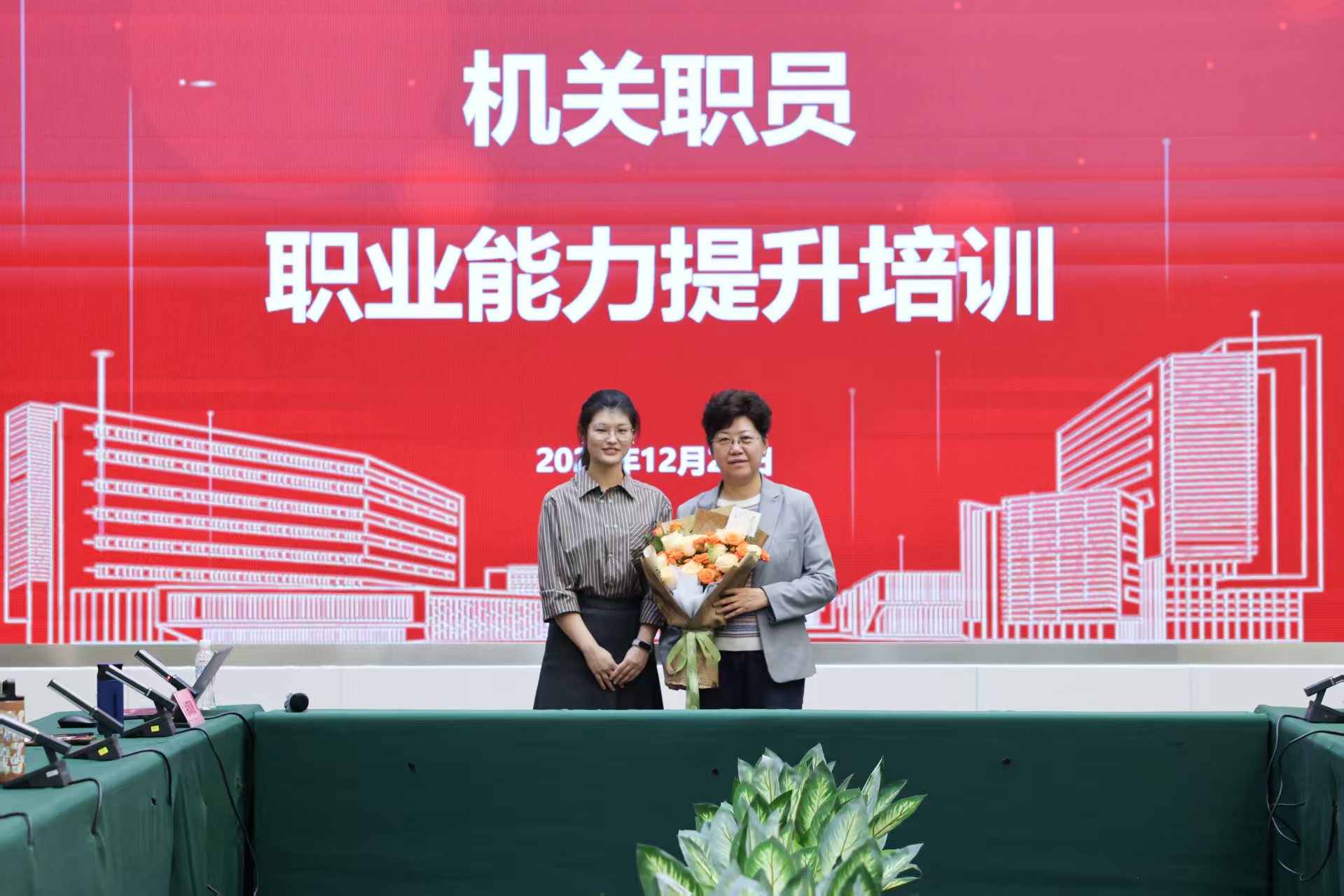 讲座中,徐双敏教授结合实例及多年管理经验,围绕管理的核心内涵、艺术特质、能力表现及提升路径展开深度授课,内容兼具理论深度与实践指导性,为参训职员带来了系统的管理知识赋能。讲座结束后,职员代表向徐双敏教授献花,感谢她多年来在教书育人和管理知识传播方面所作出的贡献。